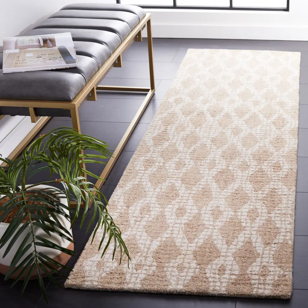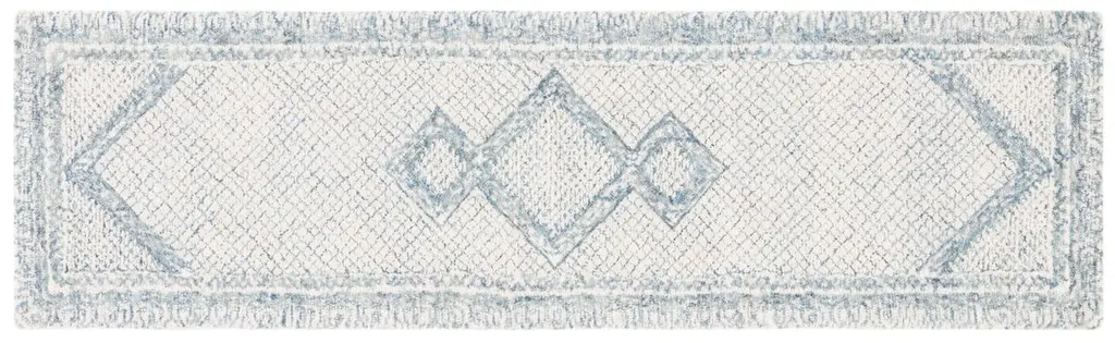 Elevate your space with our artfully crafted 4' x 6' area rug, blending the timeless charm of grey and ivory hues. This exquisite small rectangle rug showcases a unique pattern featuring elegantly repeating shapes, imbuing your floors with a touch of sophistication. With a comfortable 1/2" pile height, the hand-tufted craftsmanship uses a sumptuous blend of wool and cotton, promising enduring quality and plush underfoot comfort. Proudly made in India, this rug exudes a classic style suitable for various decors. While it is not washable and lacks slip resistance, its allure is undeniable, infusing any room with a serene and inviting atmosphere. This piece is a testament to impeccable taste and artisanal quality, ensuring that it will become a cherished part of your home.