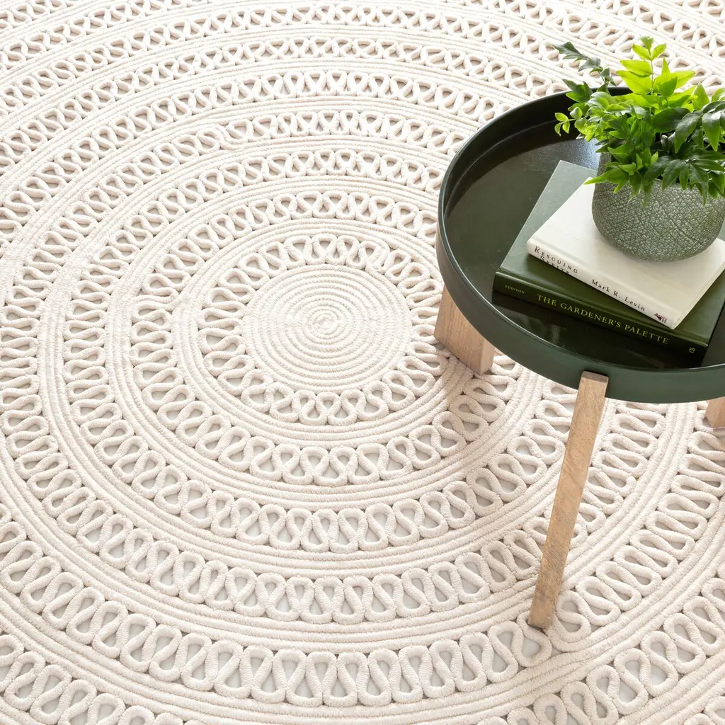 Handcrafted of performance fiber made from recycled plastic bottles, this filigree rug will bring long-lasting boho chic to a porch, a patio, or just about any room in your home. It's been treated to resist fading from the sun, and it has latex backing to help prevent slipping.
