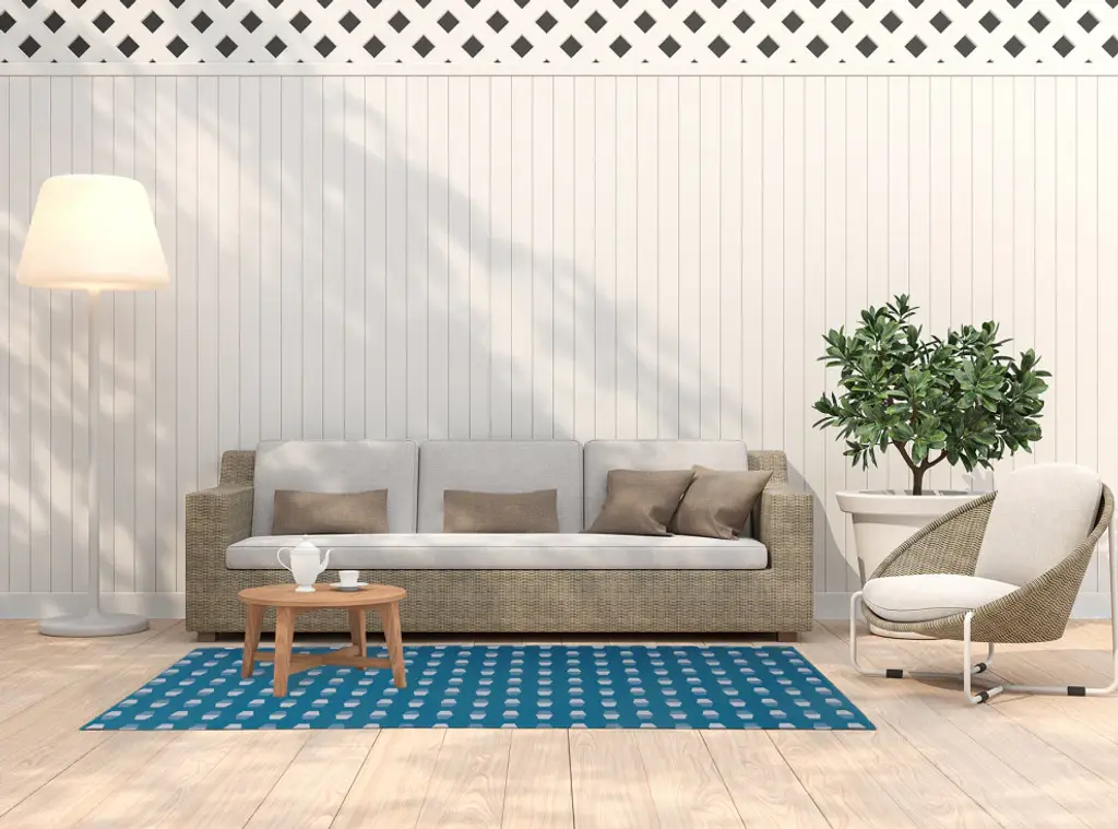Create a cool coastal environment in your home with a Bowling Pins Indoor/outdoor Rug from the Nantucket Collection. Everyone will delight in the space defining design brought to your porch, patio, kitchen, or bathroom by this area rug. The artistic and colorful design is printed on a soft polyester base with a skid resistant backing, making it a perfect way to add color, flare and personality to any indoor or outdoor space. To clean, use a mild soap and lay flat to dry.