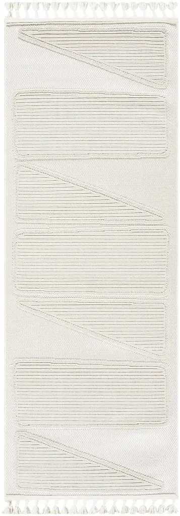 Collection: Brac Colors: Beige, Medium Brown, Gray Construction: Machine Woven Material: 100% Polyester Pile: Low Pile Pile Height: 0.16" Styles: Contemporary Made In: Turkey Thickness: 0.4" Fringe Length: 4" Price Range: $$$$$ (Most Affordable)