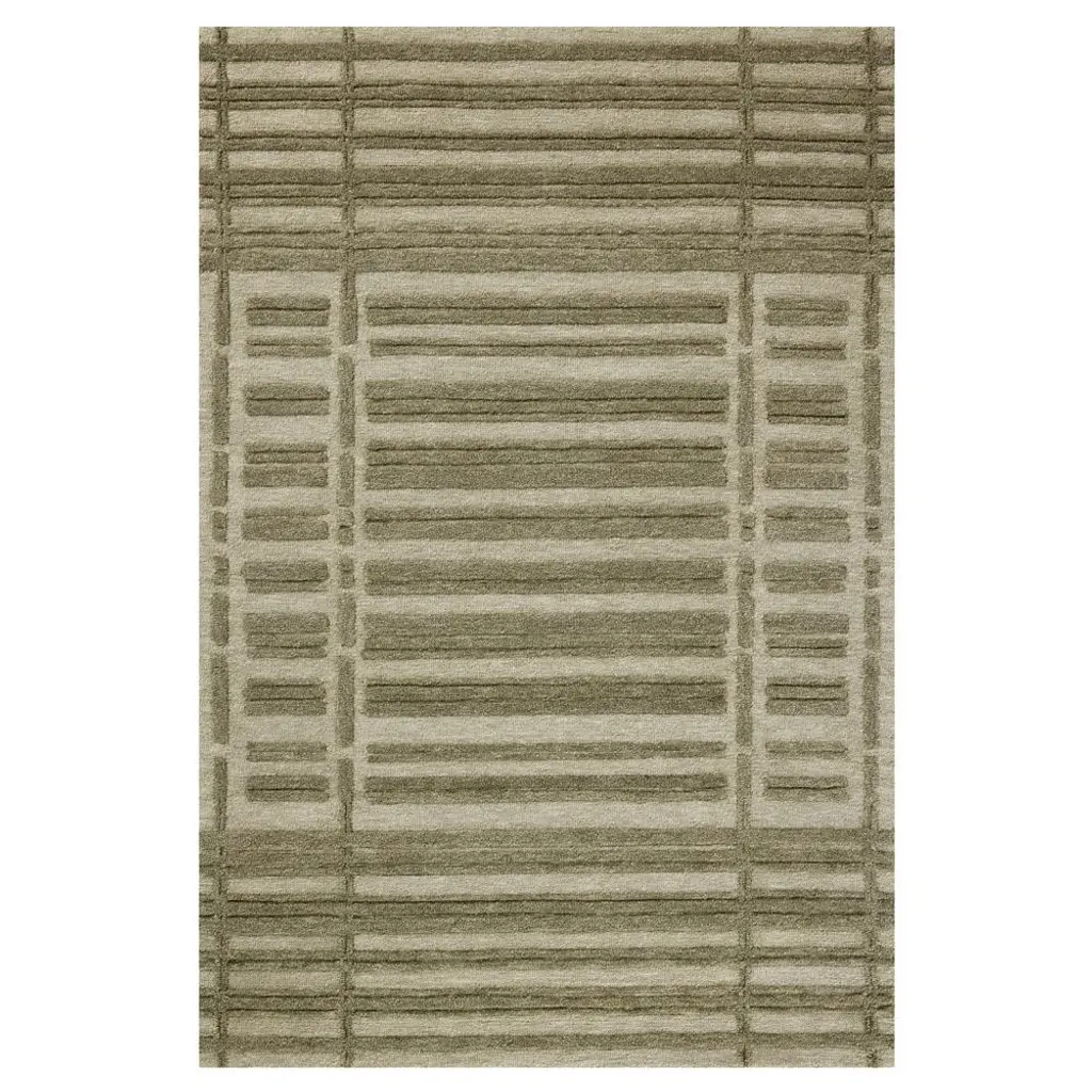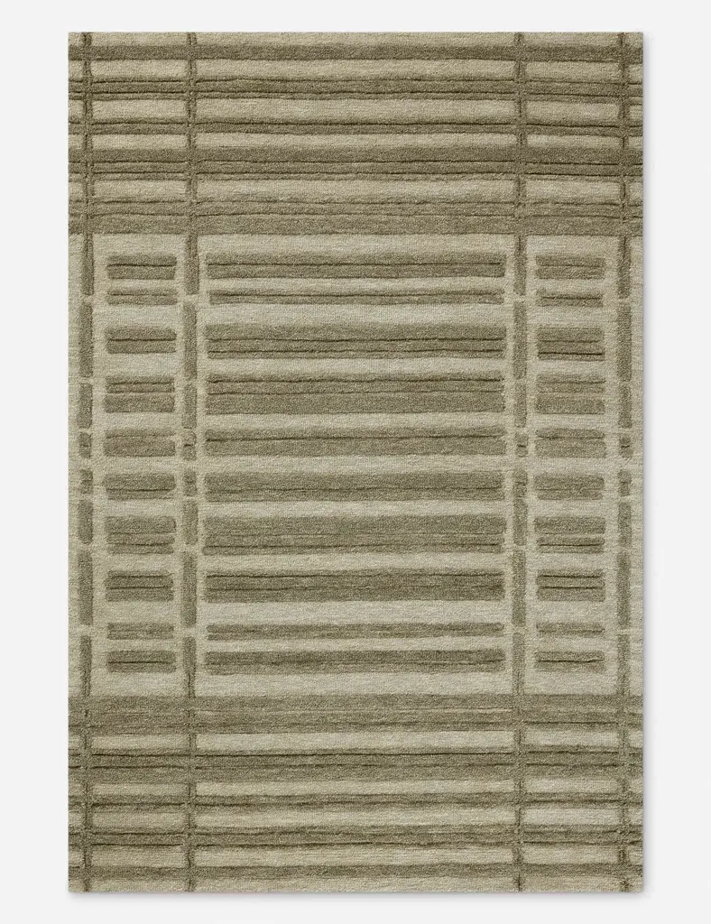 Soft texture meets fresh appeal in this signature rug collaboration from Chris Loves Julia and Loloi. This hand-tufted rug offers a tactile foundation with a tough woolen tread and subtle pattern underfoot. A raised design and two-tone palette bring depth to this verdant colorway.