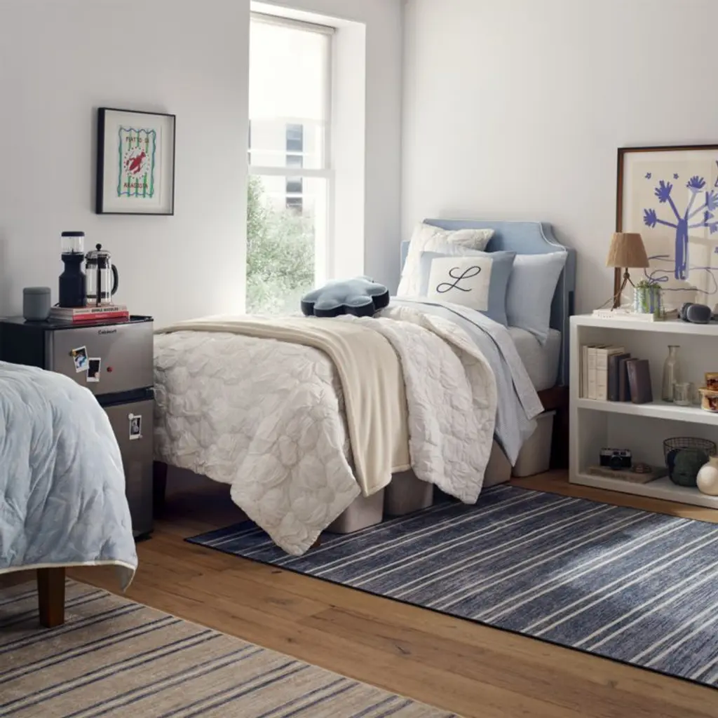 Our Brady washable area rug keeps it classic with a navy blue base accented by timeless taupe stripes. Versatile enough to anchor nurseries, playrooms and dorm rooms, it's designed to look good while withstanding the demands of everyday life. Stain-resistant and low-profile with a built-in non-slip backing, it's ready to roll (literally). No fussy upkeep requiredjust unroll, enjoy and toss it in the wash when life happens.Try it on first. Because color representation may vary by screen, using a swatch is an easy way to see exactly how your favorite rugs will look in your home. Our rug swatches ship free and can be returned at any store for a full refund.Order rugs up to 6'x9' online and pick up in a store near you. It's fast, easy and free.For 8'x10' and larger rugs, order online and arrange a convenient warehouse pickup or delivery.