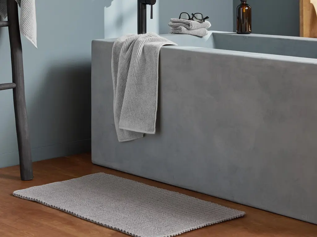 A minimalist take on pattern, this cozy rug is made from 100% long-staple Turkish cotton. Its hand-knit chevron design provides subtle texture to your bathroom floors. Choose from two calming neutral hues for easy styling with ourClassicBathcollection.