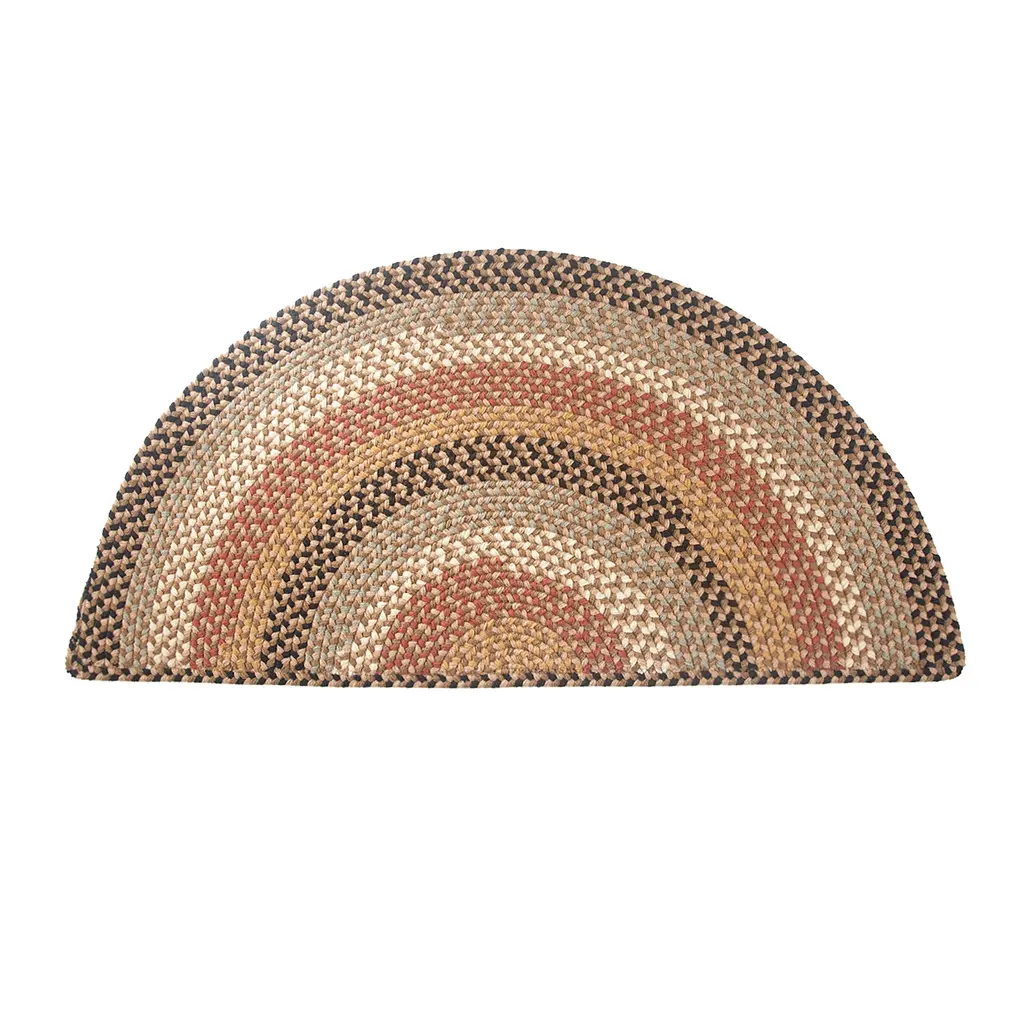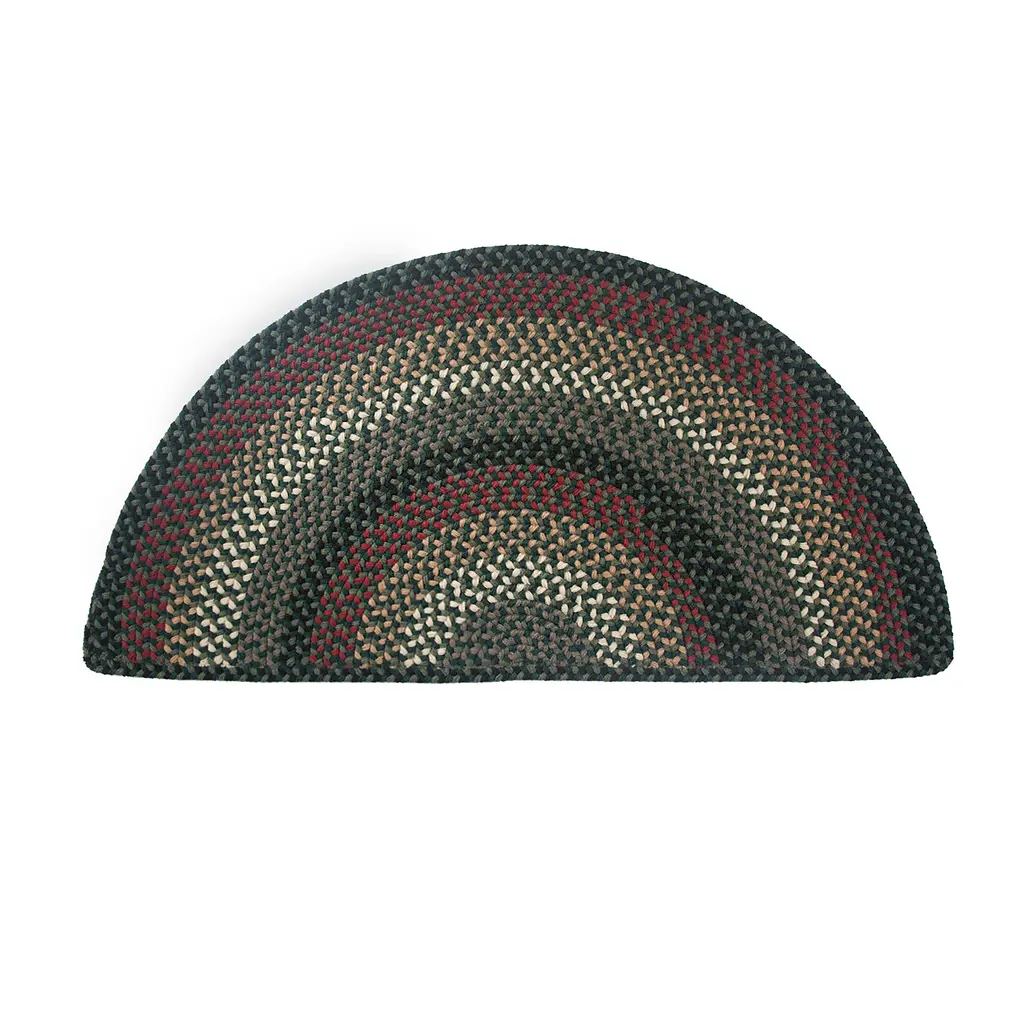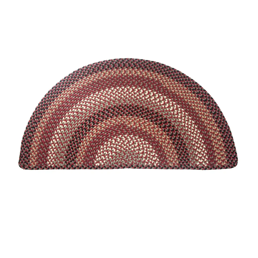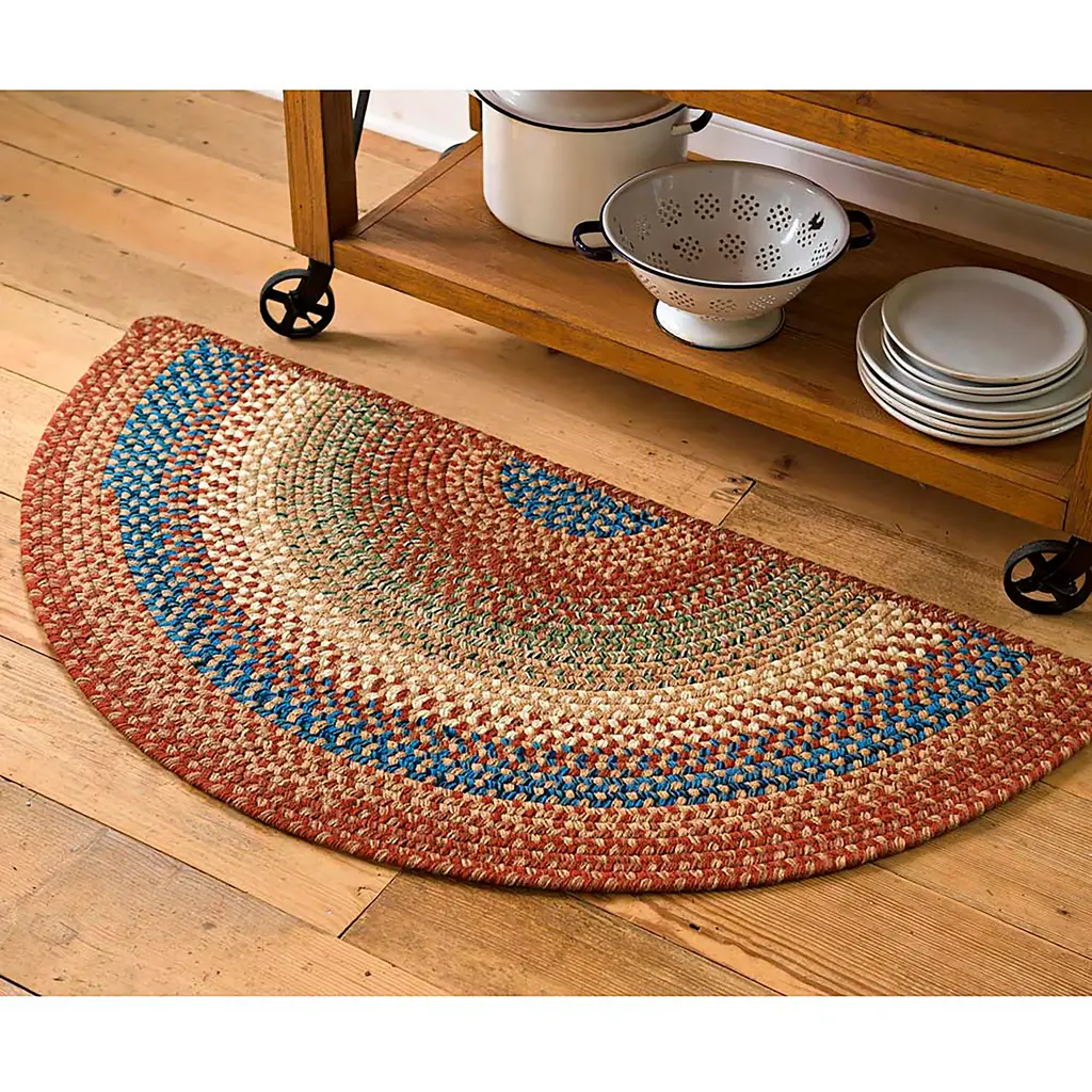 Crafted in New England in true colonial style, our Roanoke Braided Half Round Rug is flat braided using texturized polypropylene yarns, which create a wool-like finish and make the rug stronger and more flexible.With a woven polypro core, this heavy-weight semicircle braided rug will always retain its shape and strength. It's so comfortable, colorful and durable, you'll want one in all the busiest areas of your home. Use indoors or out - the colors will always remain bright and true. Plus, it reverses for twice the wear! Use of a rug liner/pad is recommended.Made with pride in the USA by Rhody Rugs, a family run company. Please note: Minor "irregularities" are inherent with all handcrafted products and contribute to their one-of-a-kind appeal. Colors may vary slightly due to dye lot changes. Minimal size and pattern repeat variations are completely normal and to be expected. What may appear to be an irregularity in color or construction is a part of the handmade nature.
