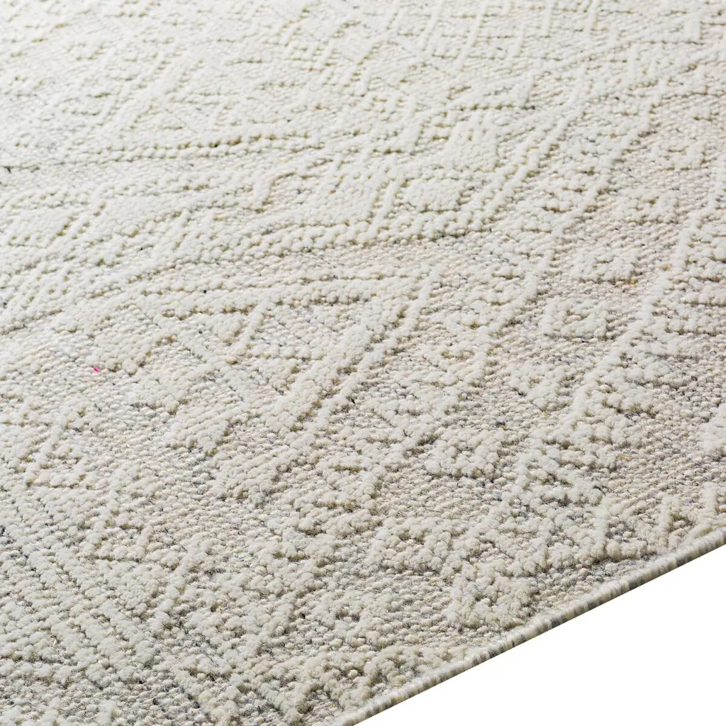 This rug's high-low pattern provides both visual and tactile allure. It's hand-knotted of New Zealand wool, prized for its softness and durability. A rug pad is recommended to prevent slipping and extend the life of the rug.