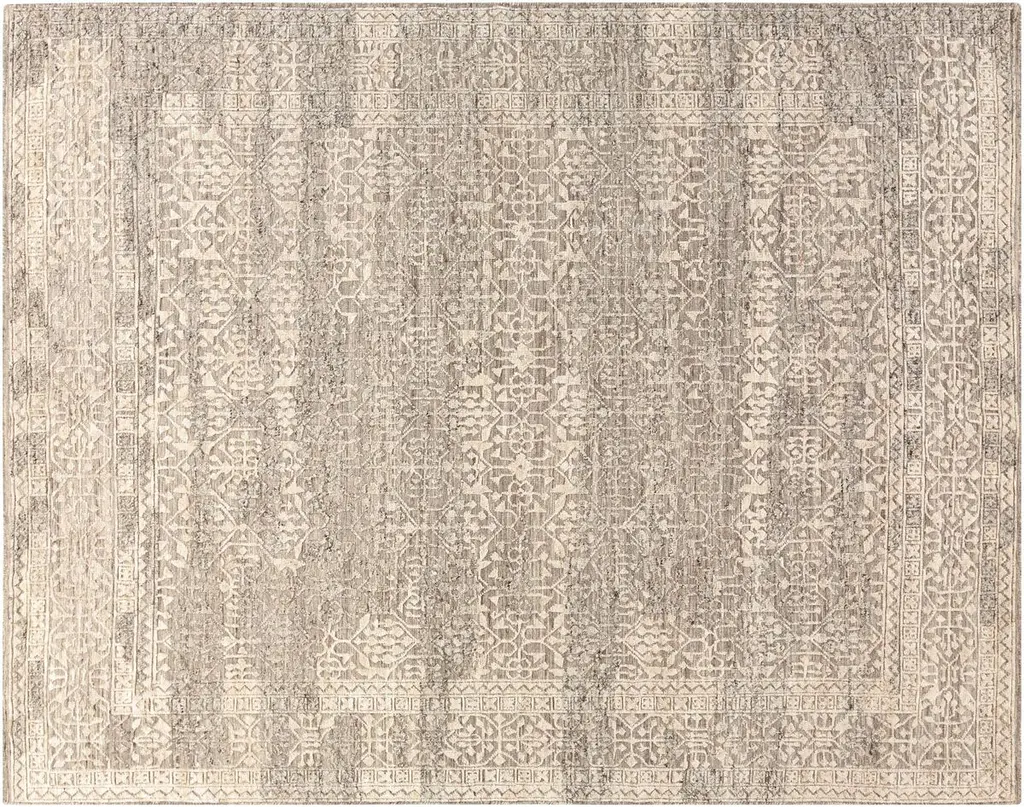 New Zealand wool is prized for its softness and durability. In this hand-knotted rug it's enhanced with viscose, adding a silky feel and inviting sheen. The high-low texture of the tonal pattern provides even more visual and tactile interest. A rug pad is recommended to prevent slipping and extend the life of the rug.
