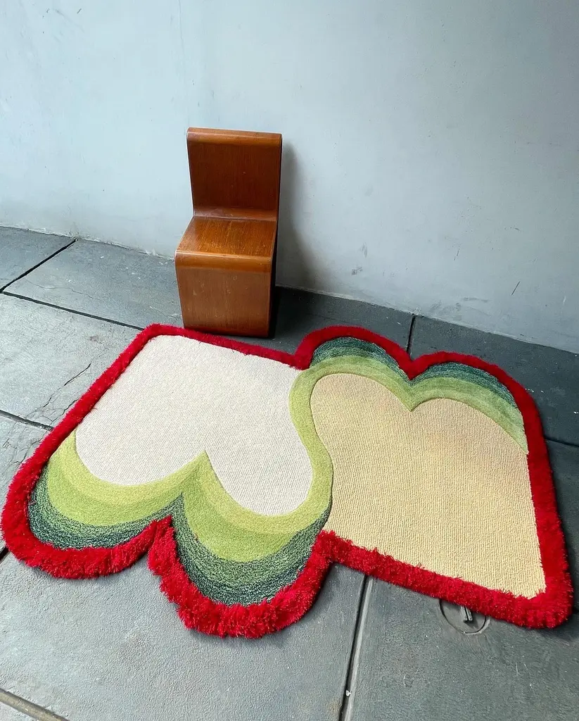 ' Breakfast and Strawberry Jam' irregular shape hand-tufted viscose wool rug by RAG HomeInterpreting our longing for sweet nostalgia, this rug is designed with our favourite breakfast meal in mind - toasted bread with strawberry jam.Original Designed Rannisa Soraya from RAG HomeHand-tufted with mixed Methods and Colours. It can be customised in size and composition upon request. Produced only in Limited Quantity. RAG under this brand, lies a strong picturesque construct with solid contemporary HOME ornaments. a delicate kind of mix materials arranged in artistic motifs the vision pursued by establishment of high-end line with the highest quality.RAG will constantly focusing and innovating, monitoring craftsmanship behind the product.RAG provide a wider selection to your HOME ornaments.the design will be consisted of limited edition with higher build quality to deliver premium value in unique features.Proudly Made In Indonesia