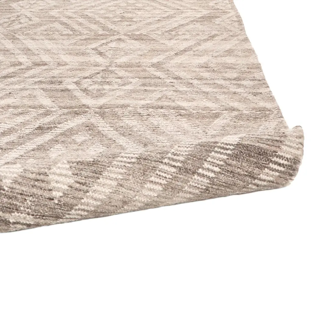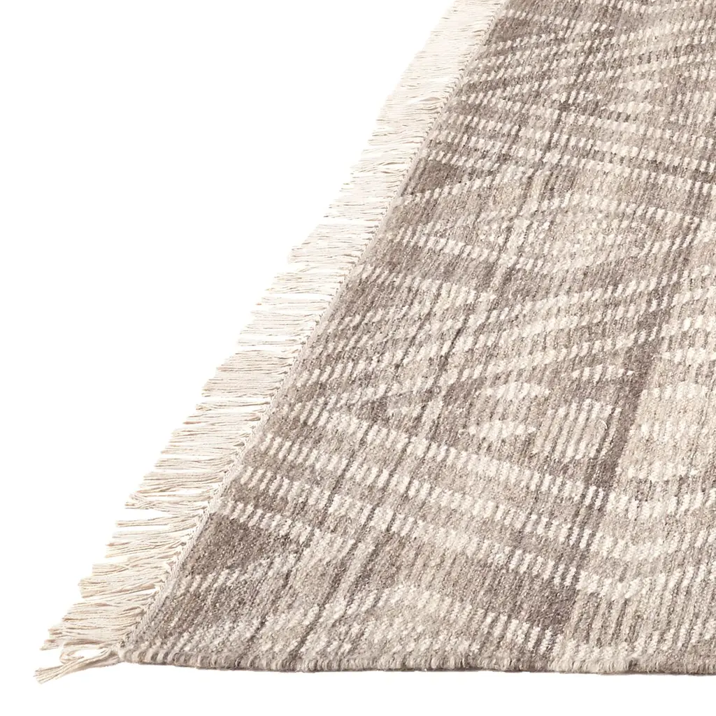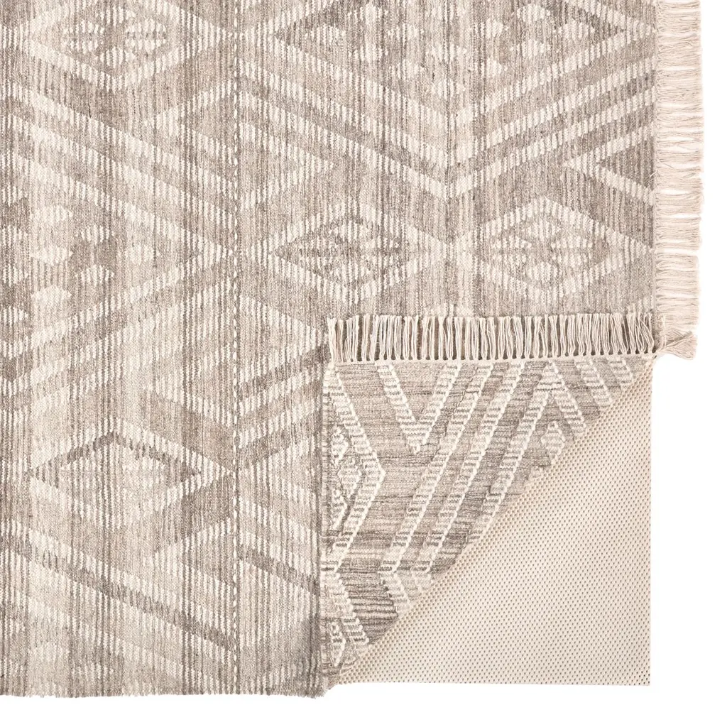 Handwoven by Indian artisans of durable, soft wool and cotton, this flat-weave rug complements its tonal geometric motifs with fringed edges. A rug pad is recommended to help prevent slipping.