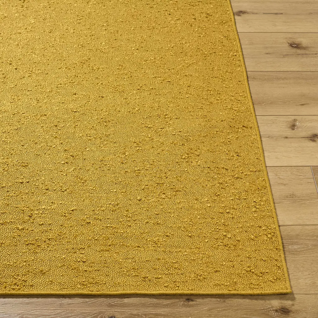 Collection: Breena Colors: Goldenrod Construction: Hand Woven Material: 100% Polyester Pile: No Pile Styles: Transitional,Traditional Backing: Canvas Machine Washable: Yes Made In: India Thickness: 0.27" Price Range: $$$$$ (Most Affordable)