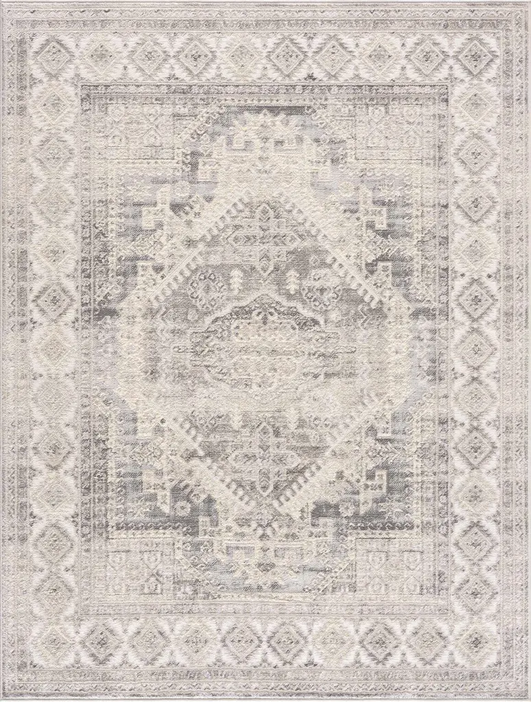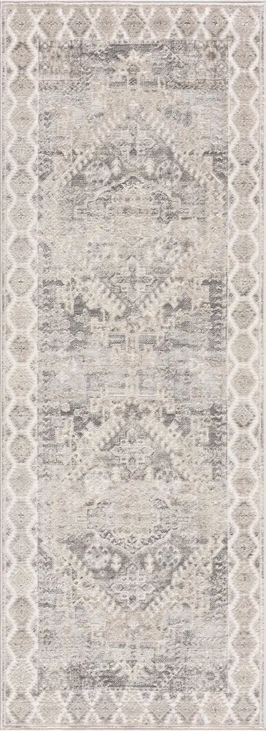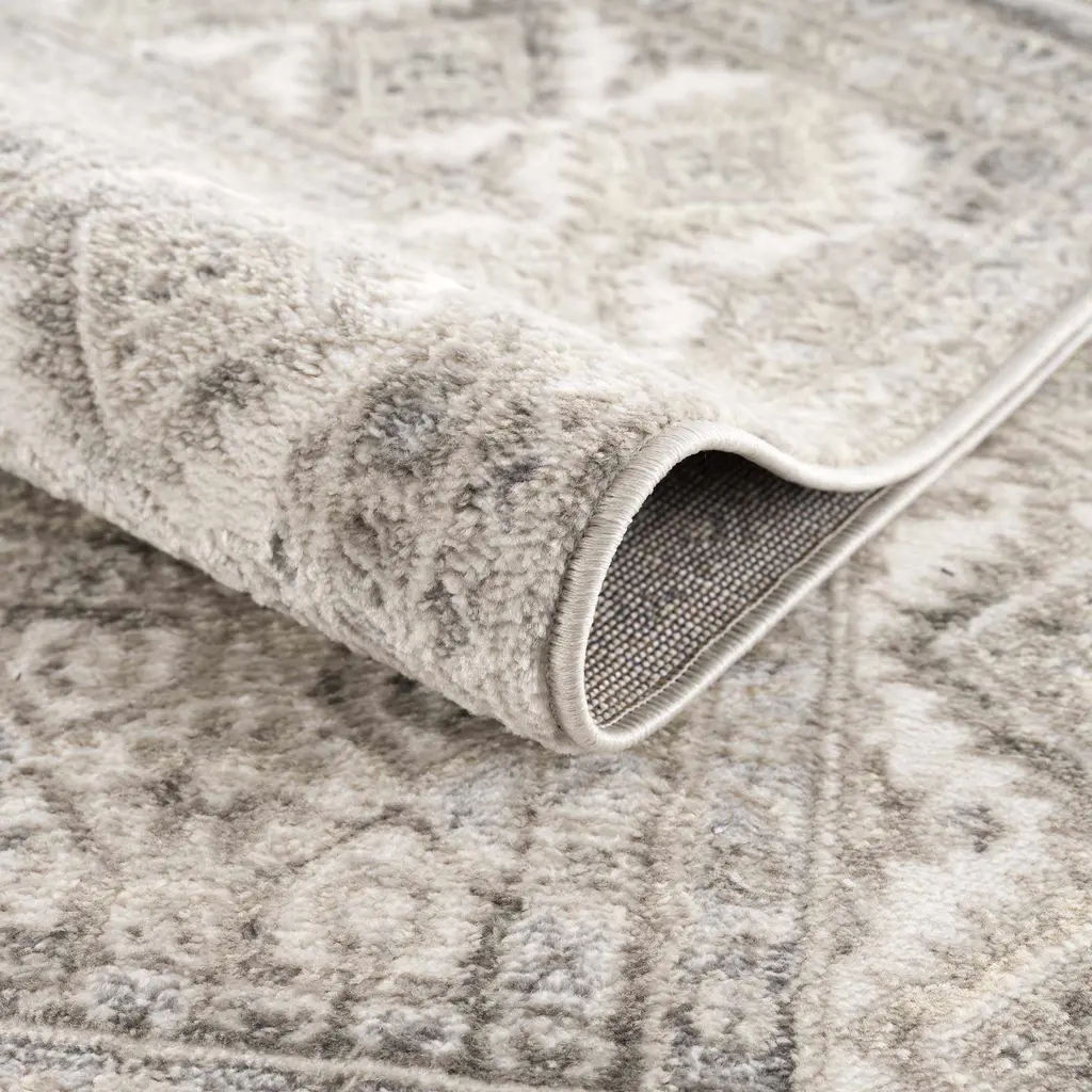Brand: Hauteloom Collection: Brend Colors: Cream, Silver Gray Construction: Machine Woven Material: 100% Polypropylene Pile: Medium Pile Pile Height: 0.4" Styles: Traditional Made In: Turkey Thickness: 0.47" Price Range: $$$$$ (Most Affordable)