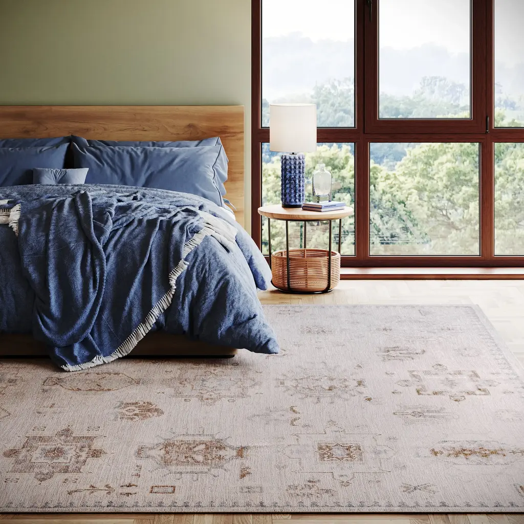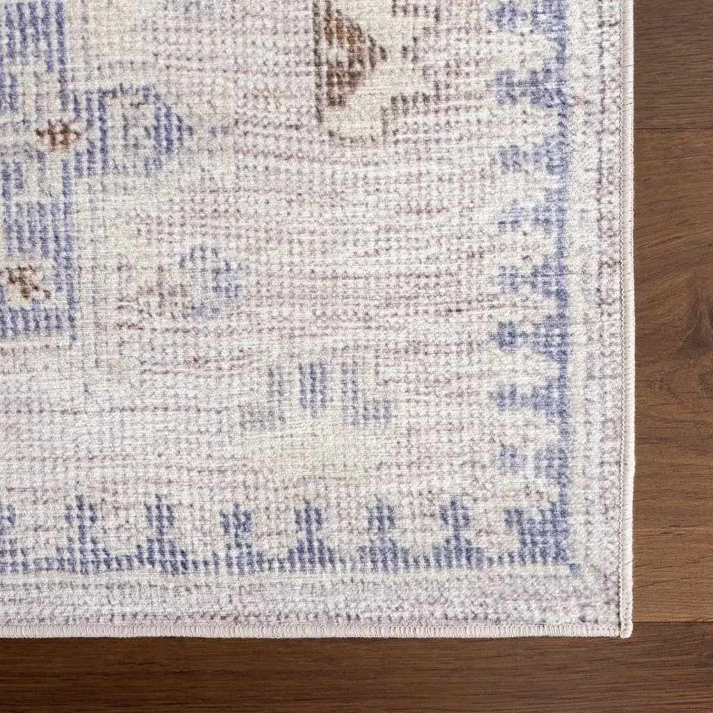 Brenda Hazy Heraldry Spill Proof Washable Rug | Beige - 2' X 3'