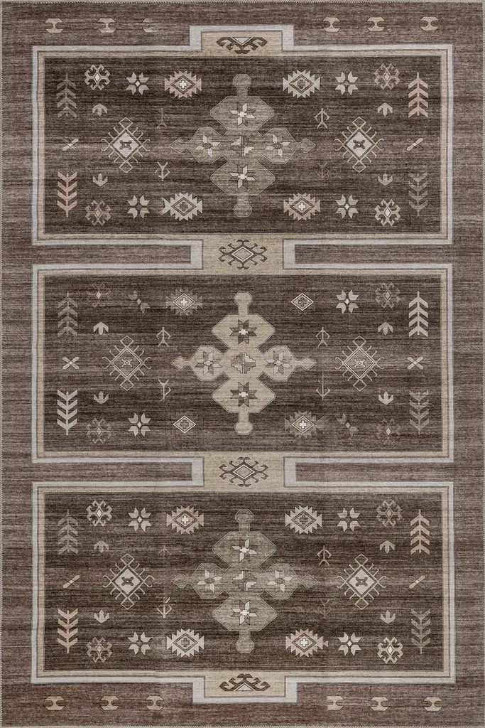 Briar Geometric Spill Proof Washable Rug | Dark Brown - 4' X 6'