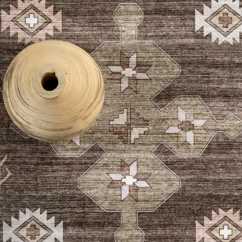 Briar Geometric Spill Proof Washable Rug | Dark Brown - 8' X 10'
