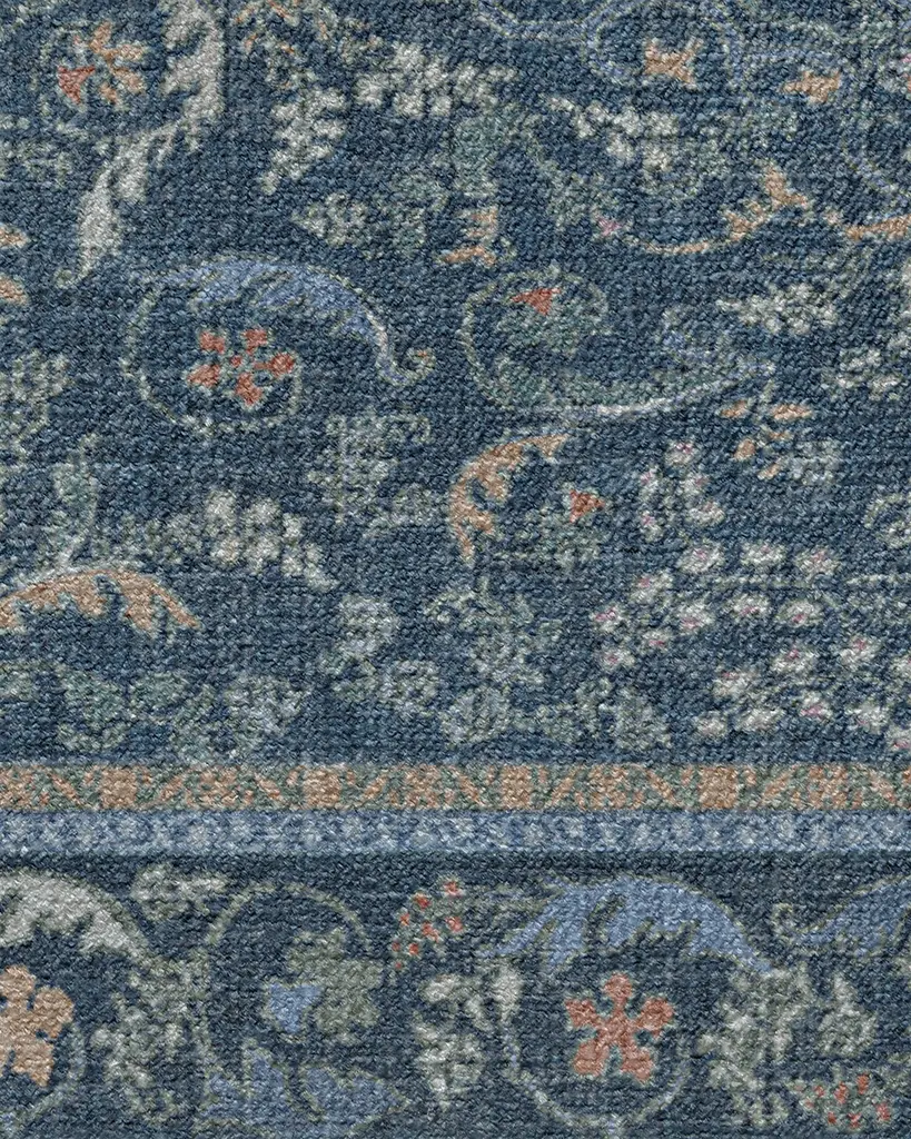 Make a grand entrance with our Bridgerton Fit for a Queen Blue Multicolor Rug. Inspired by ornate and embellished Regency-era interiors, this traditional rug design has whimsical floral motifs reminiscent of royal garden parties. The antiqued and distressed style features soft marigold, sage, cream and orange blooms against a dark blue background. Water-resistant, stain-resistant, and machine-washable. Rug colors may vary slightly according to your device and the lighting in your space.