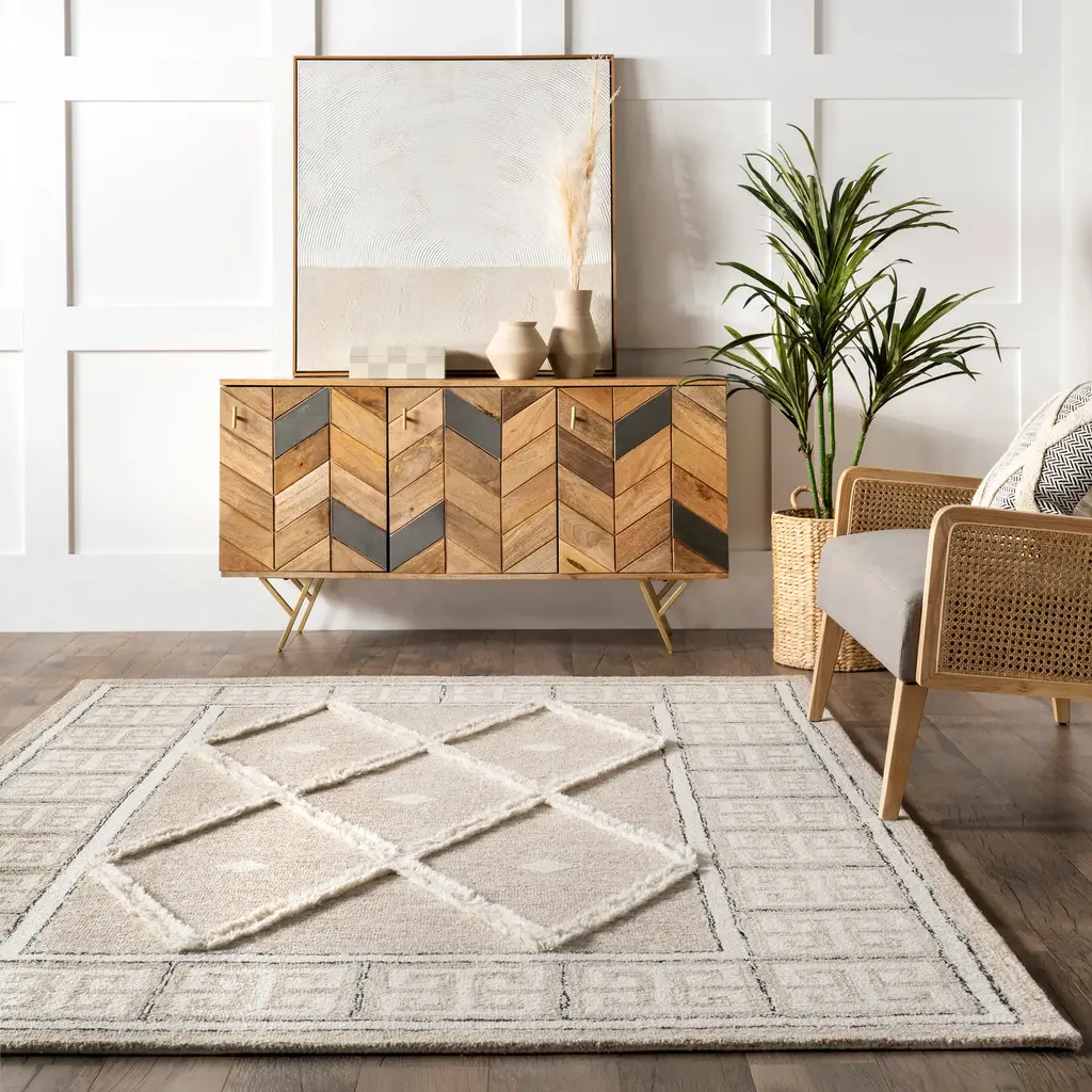 Brie Minimalism Tiled Rug | Beige - 4' X 6'
