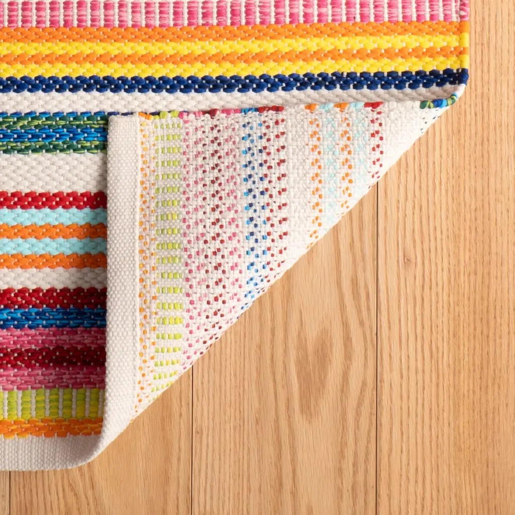 The Bright Stripe Handwoven Indoor/Outdoor Rug is a fun, fresh, and colorful indoor/outdoor rug. This rug is lightweight, durable, and washable, making it the perfect solution for high-traffic areas such as kitchens, mudrooms, family rooms, playrooms, or patios.