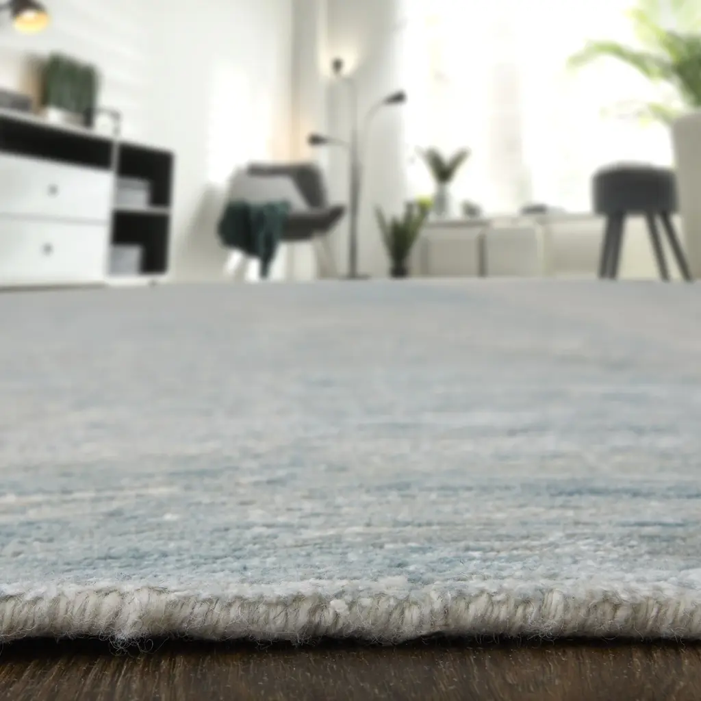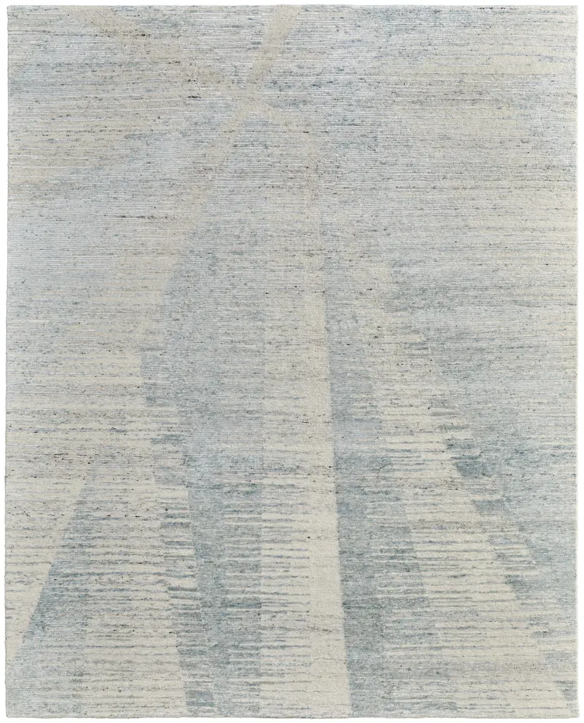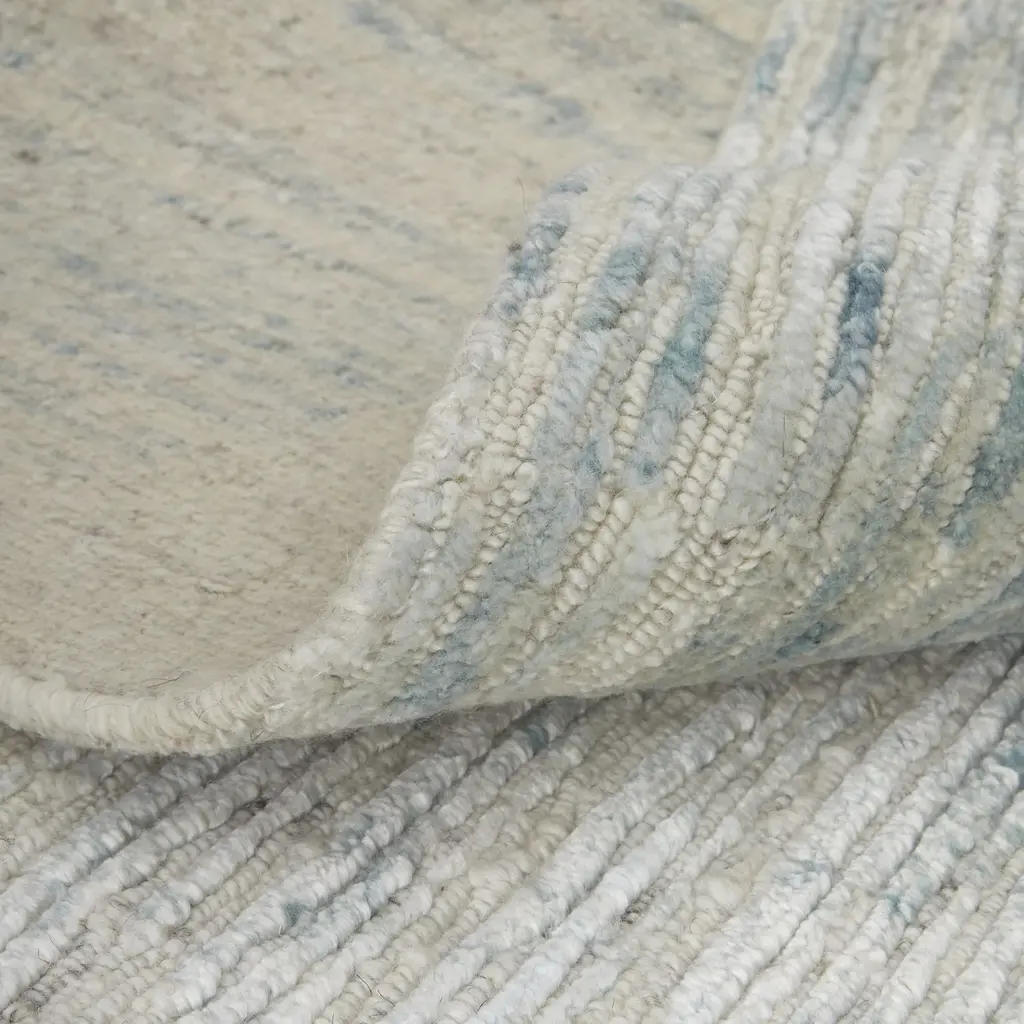 Collection: Brighton Colors: Blue, Ivory, Silver Gray Construction: Hand Knotted Material: Face: Wool, Viscose Pile: Low Pile Pile Height: 0.31" Styles: Contemporary,Casual,Transitional,Bohemian Backing: N/A Made In: India Thickness: 0.31" Price Range: $$$$$ (Premium)