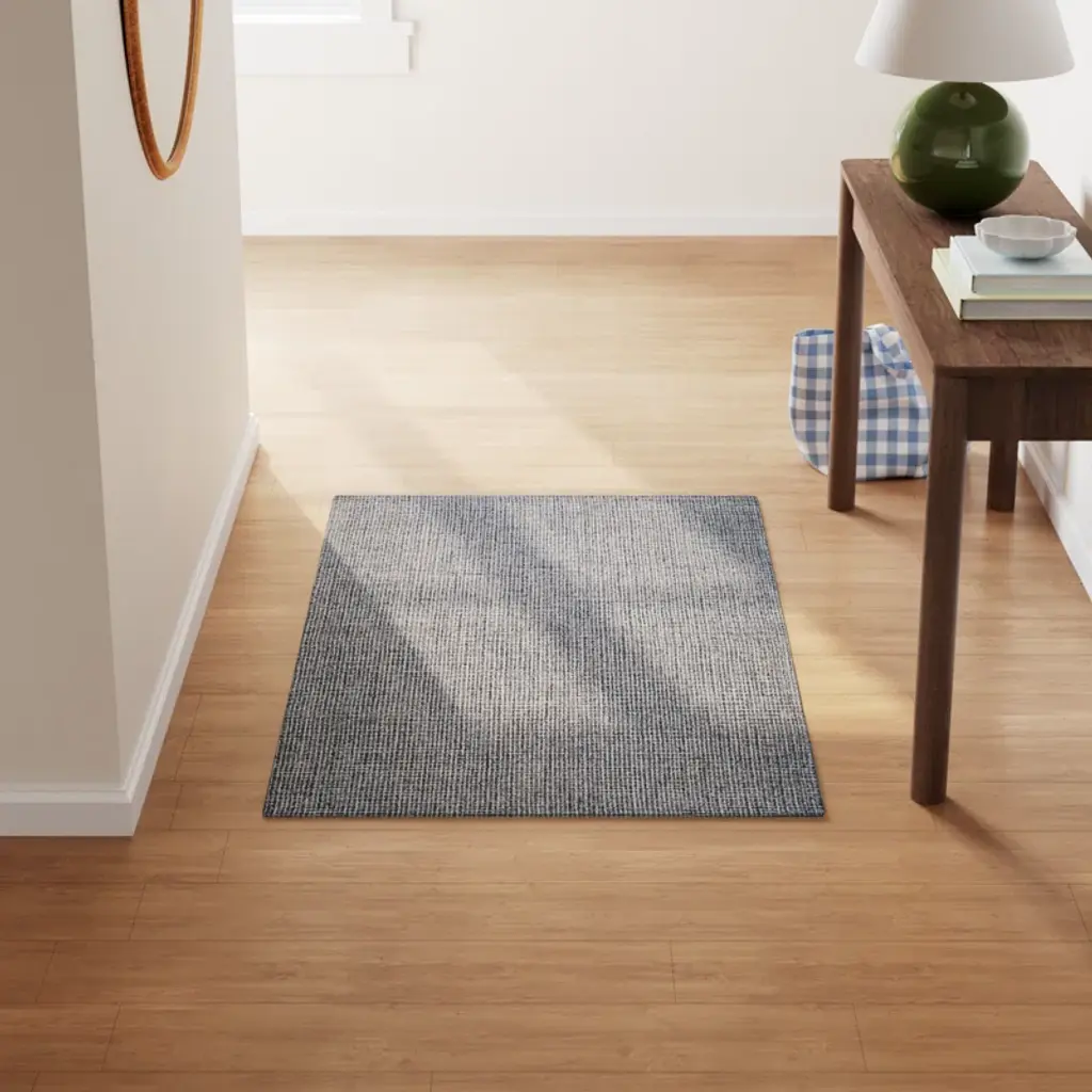 Elevate your living space with this hand-tufted wool rug, crafted with care and designed to make a statement. Its black and gray hand-woven construction showcases the skillful artistry that goes into each piece, making it a true work of art for your floors. We love that it's also stain-resistant and easy to maintain. With a cotton backing, it stays put without the need for a non-slip pad.