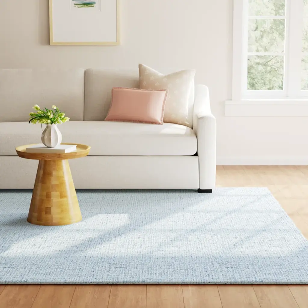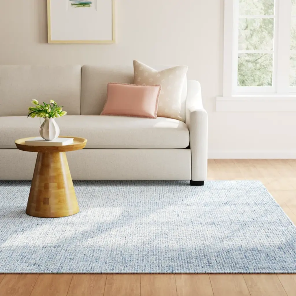 Elevate your living space with this hand-tufted wool rug. Its blue and white hand-woven construction showcases the skillful artistry that goes into each piece, making it a true work of art for your floors. It’s stain-resistant, so a good choice for busy, high-traffic areas in your home. It has a cotton backing, but we recommend rolling it out over a rug pad to keep it in place (sold separately).
