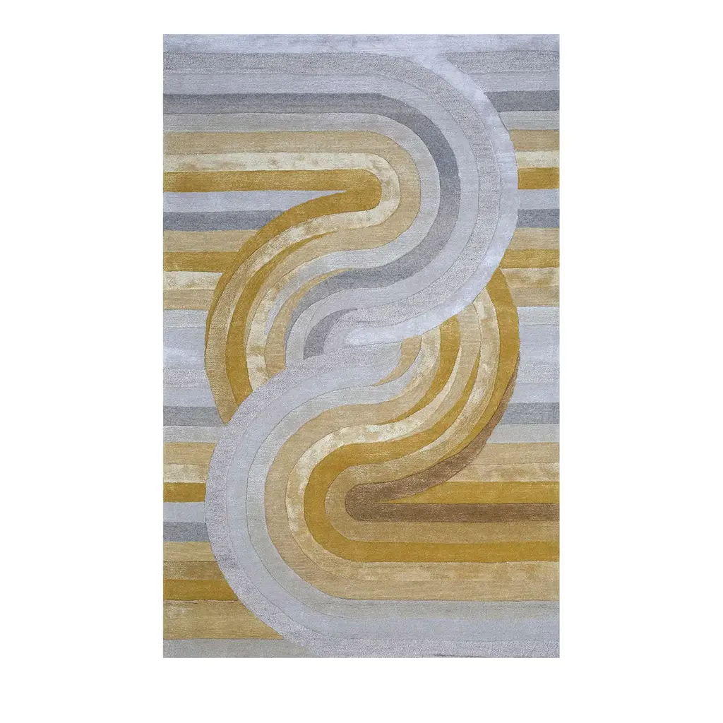 BRIXTON is a frozen layer of movement — a city in motion, then stopped. Curving lines in black, cream, and gray twist with an urban rhythm reminiscent of roads, rails, conversations.The rug maps out a reversed system — not ordered, but surrendered. It is handwoven from natural materials only, with color layers that create live but deliberate movement. It has raw energy with quiet control.Gadi Carmel’s design was born from noise — and turned it into harmony.