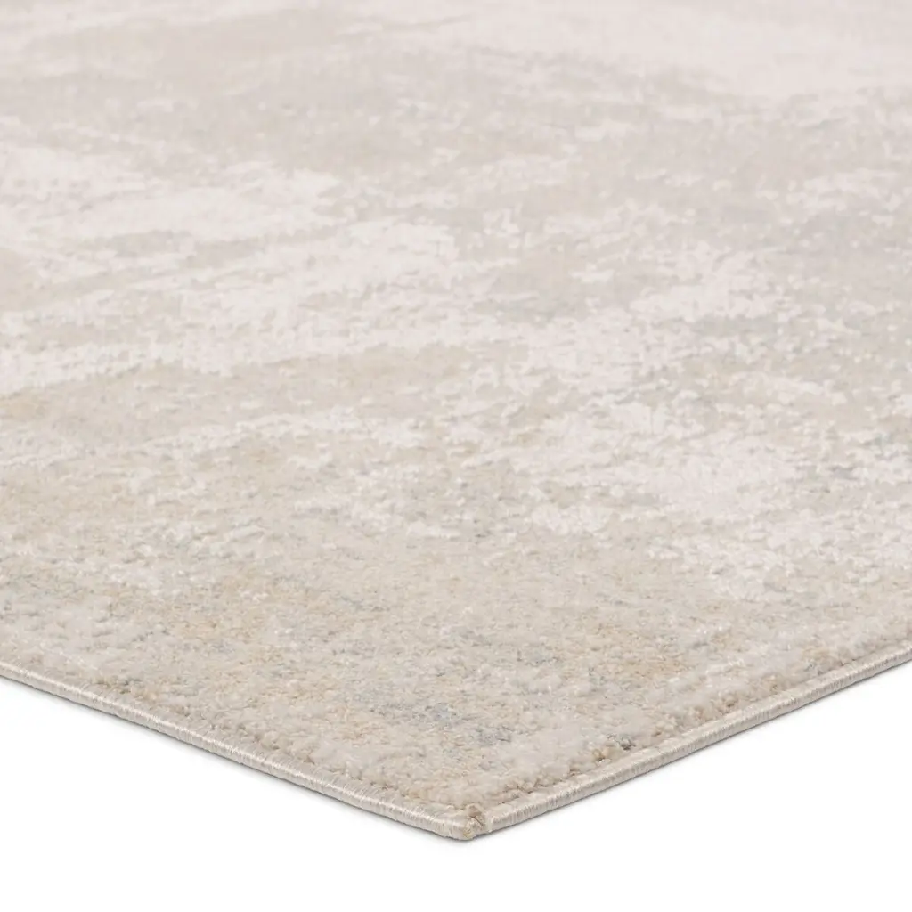 The gray, cream, and beige tones of this area rug create a soothing effect in any space. The distressed, abstract design and high-low pile establish a modern style. Crafted of stain and water-resistant polyester and polypropylene, this easy-to-clean rug withstands both high and low traffic, as well as homes with children and pets.