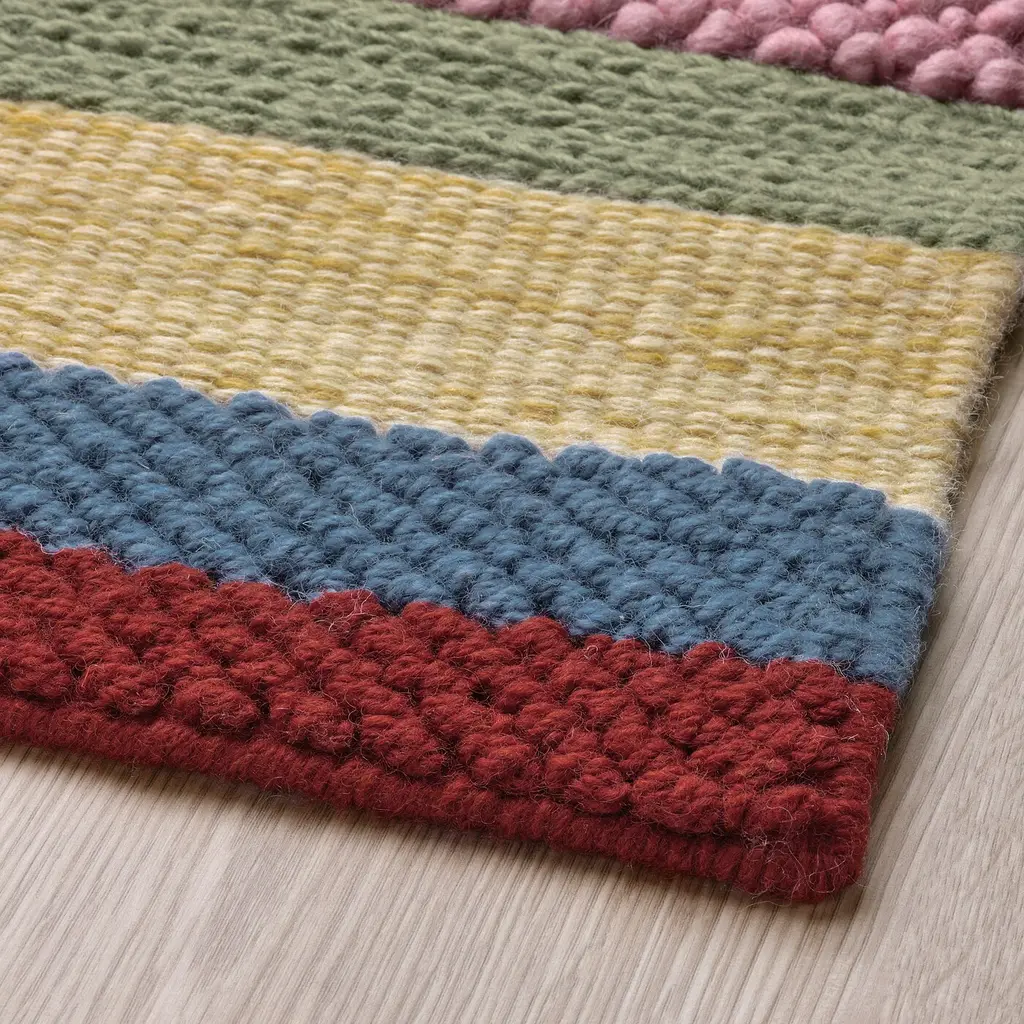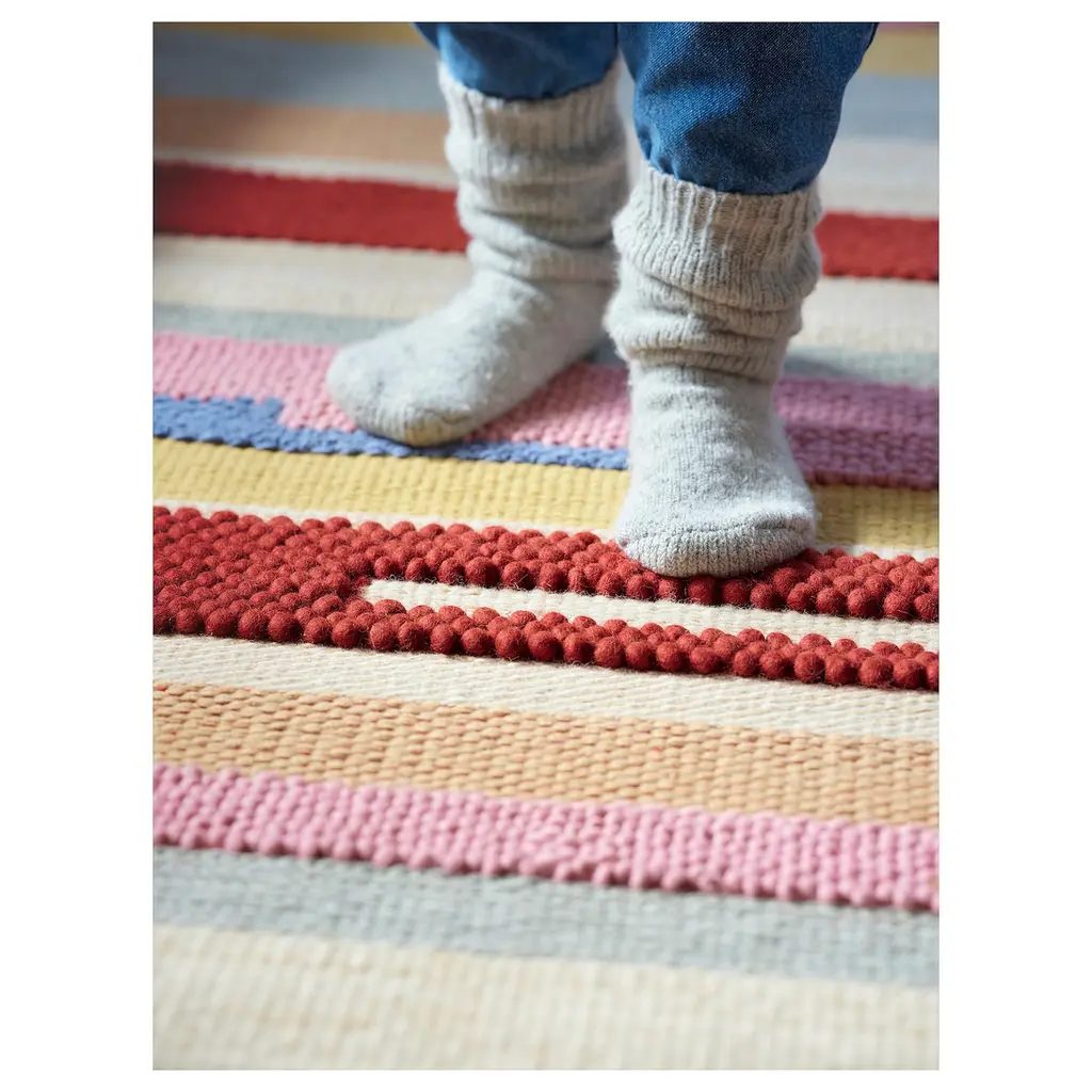 BRÖNDEN Rug, low pile - handmade multicolor/red 5 ' 7 "x7 ' 10 ". The combination of different weaves and textures give the rug a lively character. The rug is hand-woven by skilled craftspeople and adds a personal touch to your room. This product has been tested for domestic use.