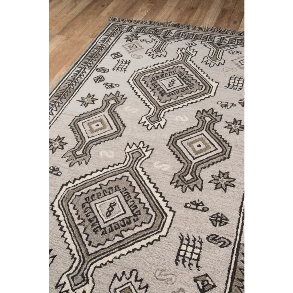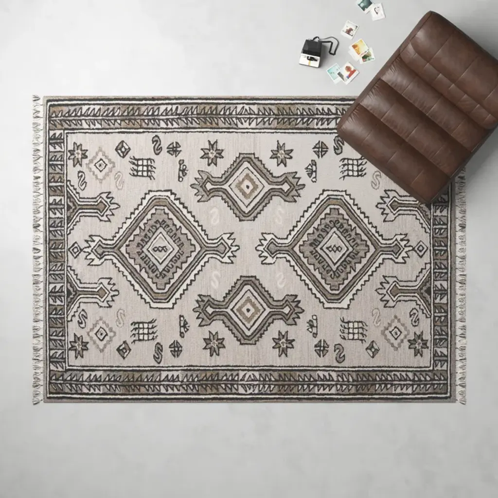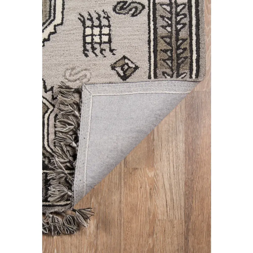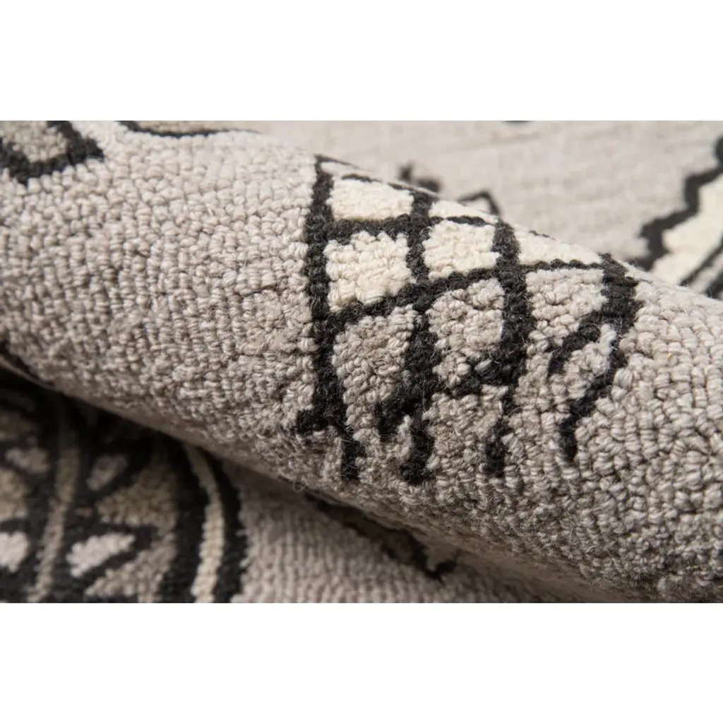 This handmade, wool area rug has a classic, rustic look to set the stage in your space. Hand-tufted from 100% wool, it offers cushion as well as organic resistance to stains and moisture. The design features a timeless repeating medallion pattern with botanical and geometric shapes in hues of gray and beige. We love how this rug's 0.4" pile height is a balance of plush and still easy to vacuum. Pair it with a rug pad to add cushion underneath and prevent slipping and sliding (sold separately).