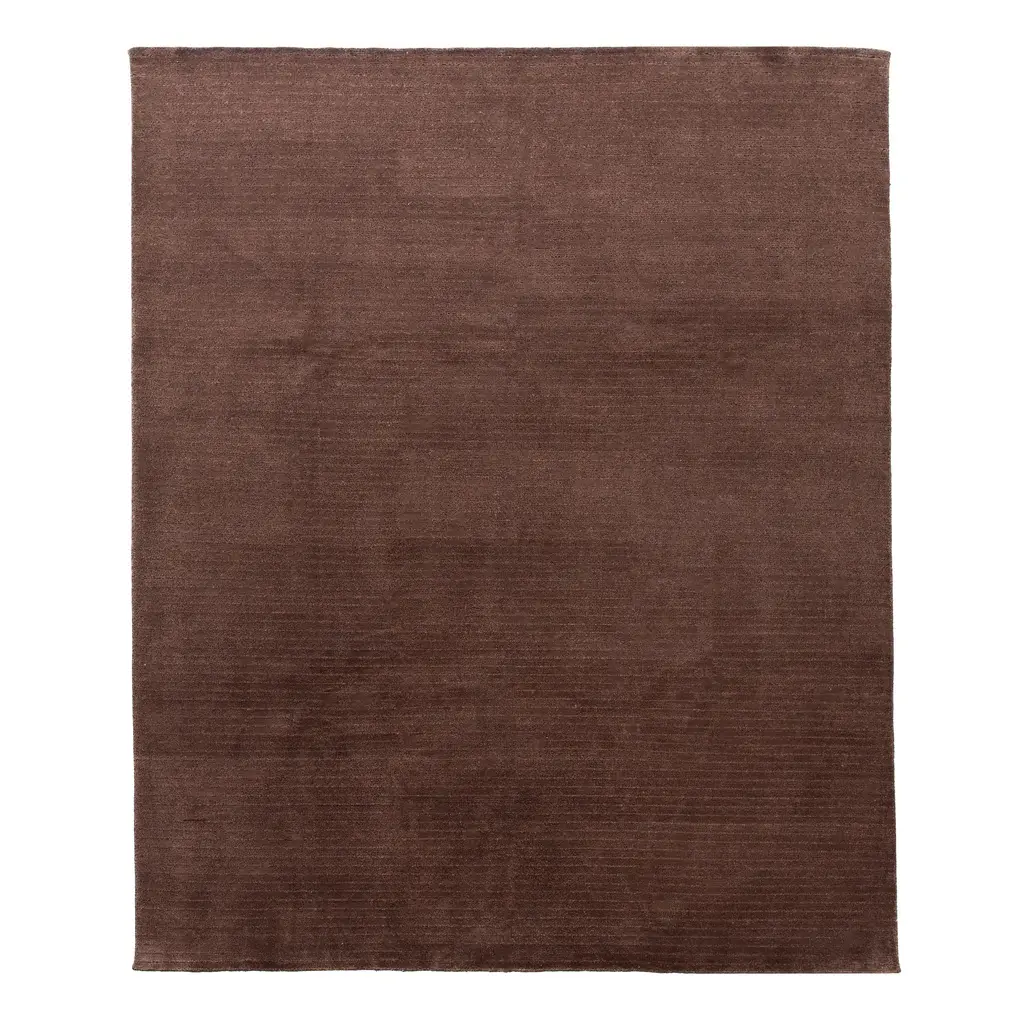 Appearing solid at first but full of geometric charm upon closure inspection, this Brown Textured Wool Blend Rug - 8' x 10' features a subtle striped design in a rich brown tone. This one-of-a-kind rug is hand-loomed from wool and viscose.