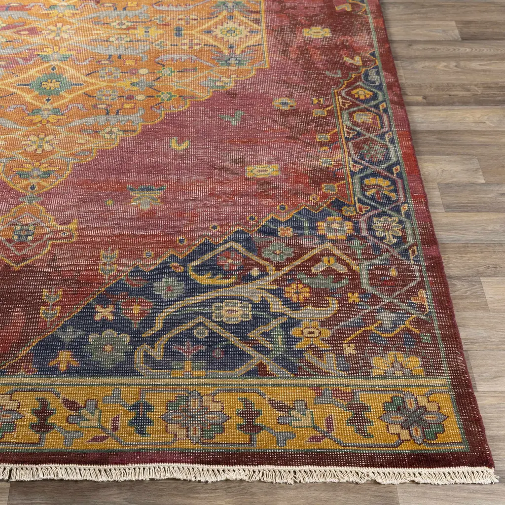 Collection: Brush Colors: Mauve, Burgundy, Mustard, Camel, Medium Gray, Blue, Pale Blue, Plum, Brick Red, Slate Blue Construction: Hand Knotted Material: 100% NZ Wool Pile: Low Pile Pile Height: 0.06" Styles: Traditional Made In: India Thickness: 0.2" Fringe Length: 1" Price Range: $$$$$ (Affordable)