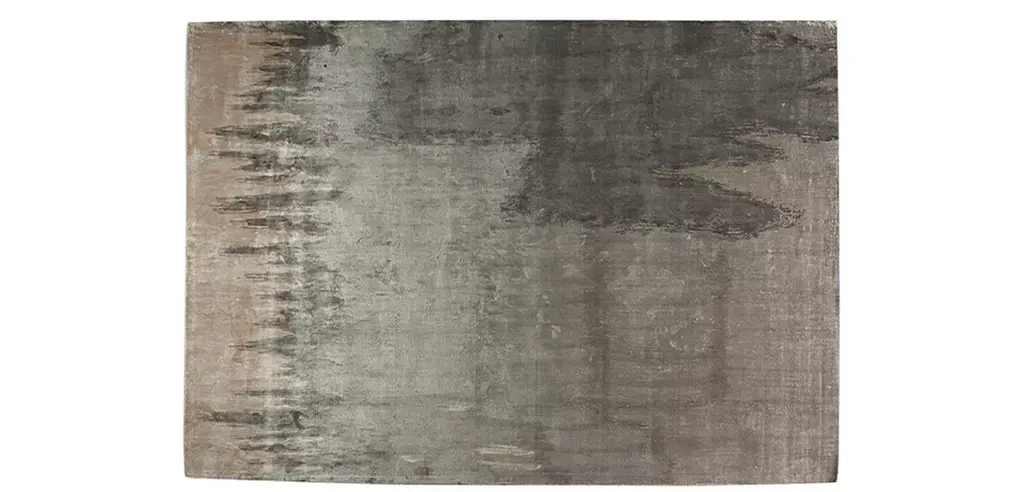 This bold and dynamic rug features subtle shades of grey resembling a painter's brush strokes on a canvas.