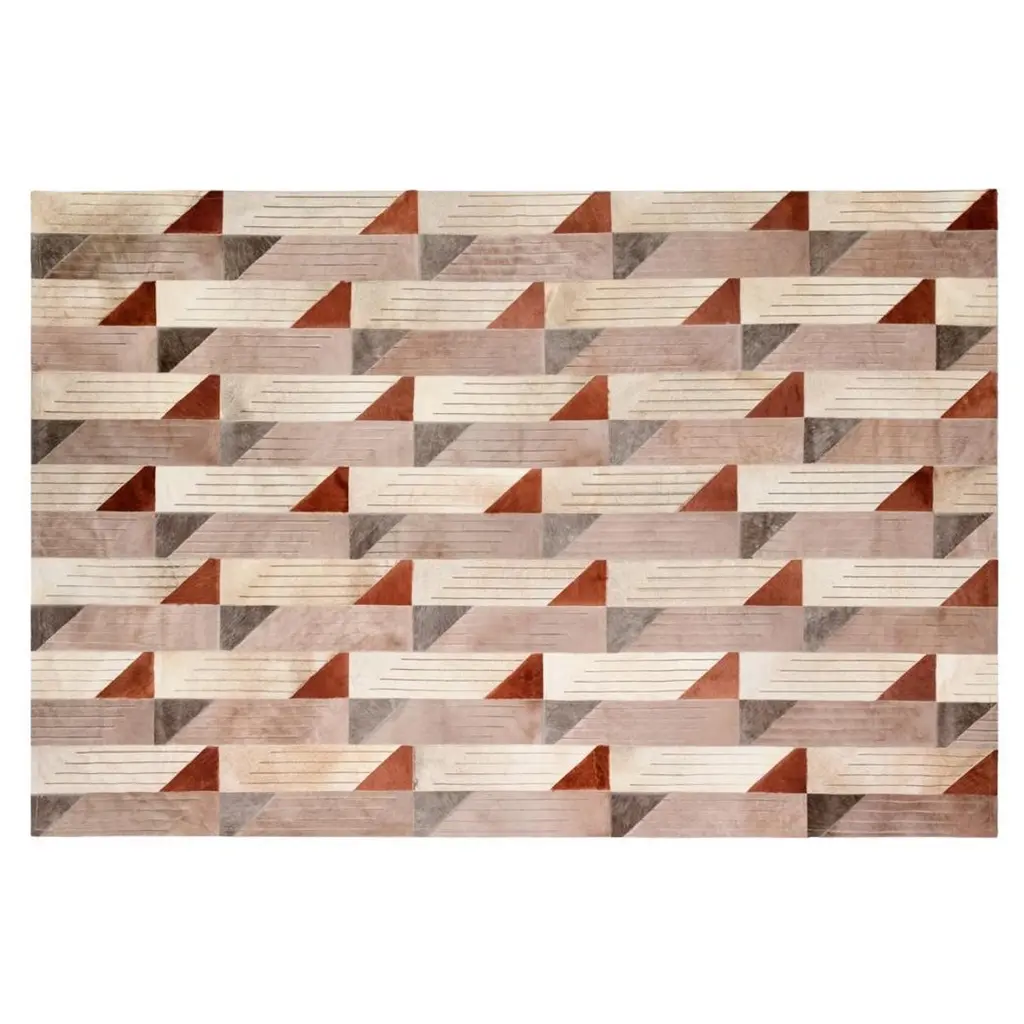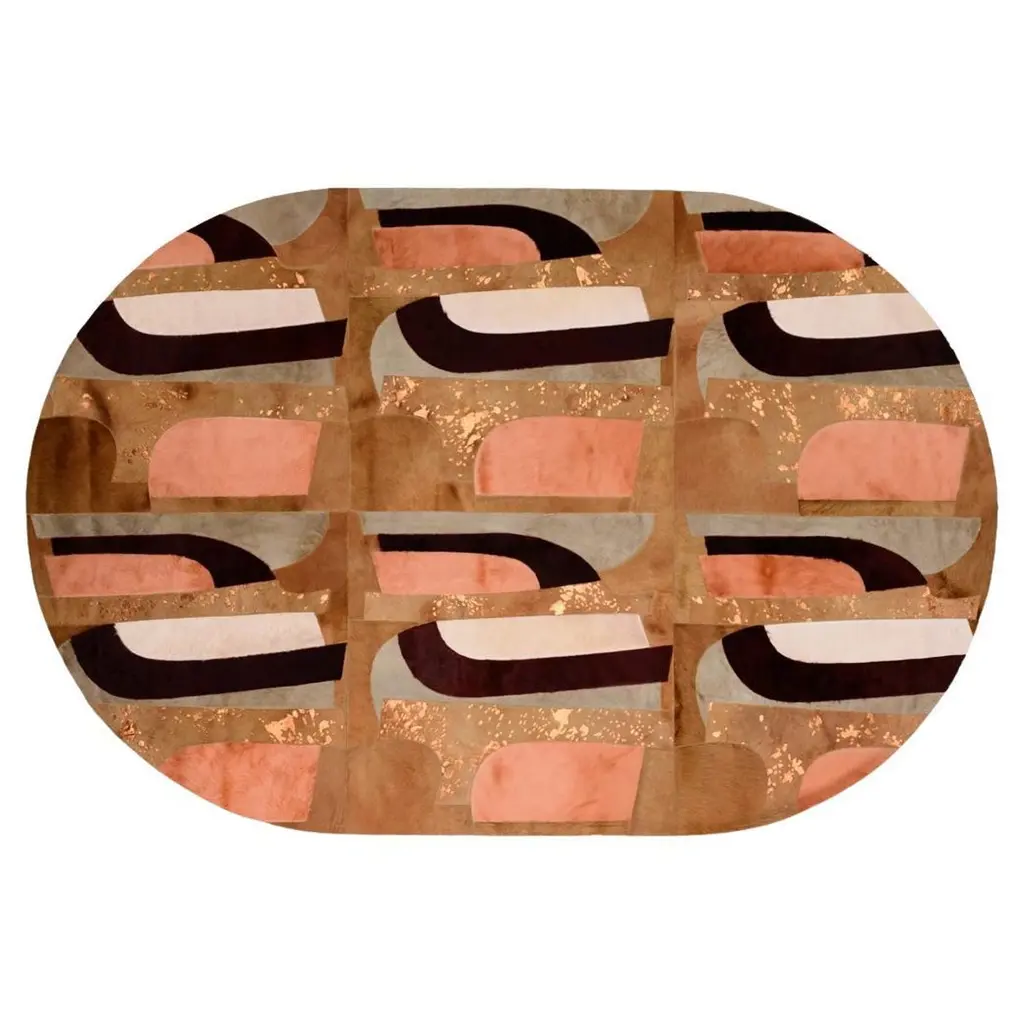 The Marabu rug was inspired by Greg Natale’s love for Brutalism. Its blocky, geometric pattern reflects the brutalist architecture of the iconic Marabu Discoteca. Marabu Warm features a striking combination of both saturated dyed tones and natural shades;Tan, Rich russet, Apricot, Caramel, Taupe and Ivory, accented with Bronze metallic.The Marabu is stitched together using commercial grade nylon thread and features a branded ribbon edge finish. It can easily be customized to any colour, size or shape.The Altro Mondo Collection is a range of hide floor and wall coverings by Greg Natale for Art Hide. Classically stylish with an unconventional twist, Altro Mondo, meaning “other world” in Italian, is inspired by the innovative architecture and radical design ethos of famous Italian discotheques from the 1970s to the 1990s. Drawing from Brutalist, Postmodernist, and Space-Age aesthetics, the collection evokes the bold spirit embodied by these otherworldly spaces. Art Hide rugs are made to order. Please allow 4-6 weeks for delivery.