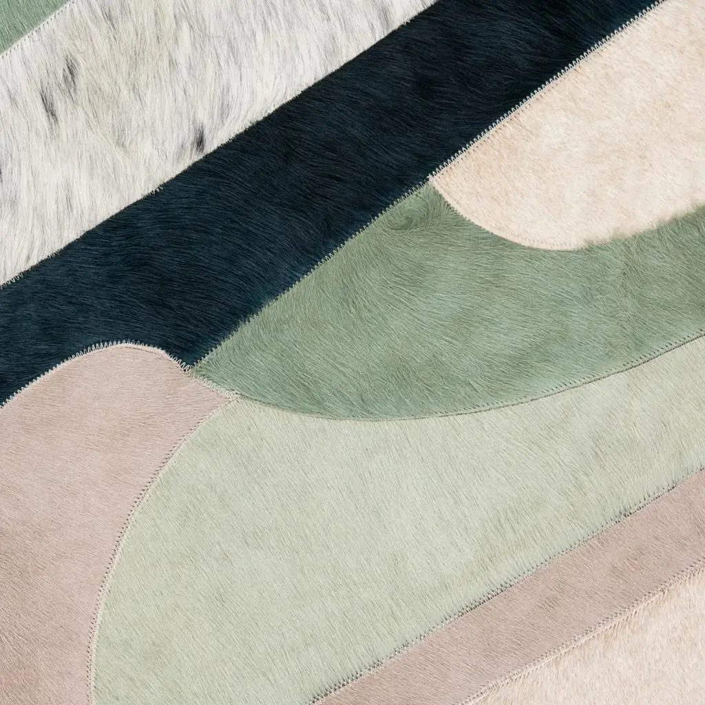 The Marabu rug was inspired by Greg Natale’s love for Brutalism. Its blocky, geometric pattern reflects the brutalist architecture of the iconic Marabu Discoteca. Marabu’s blocky, slightly surrealist design finds inspiration in Greg Natale’s appreciation for 1970s Brutalism. Available in two colourways, the Marabu rug offers a bold, artistic touch to any space.Marabu Cool features a striking combination of both saturated dyed tones and natural shades; Navy, Light Green, Grey, White Speckle and cool Tan.The Marabu is stitched together using commercial grade nylon thread and features a branded ribbon edge finish. It can easily be customized to any colour, size or shape.The Altro Mondo Collection is a range of hide floor and wall coverings by Greg Natale for Art Hide. Classically stylish with an unconventional twist, Altro Mondo, meaning “other world” in Italian, is inspired by the innovative architecture and radical design ethos of famous Italian discotheques from the 1970s to the 1990s. Drawing from Brutalist, Postmodernist, and Space-Age aesthetics, the collection evokes the bold spirit embodied by these otherworldly spaces. Art Hide rugs are made to order. Please allow 4-6 weeks for delivery.
