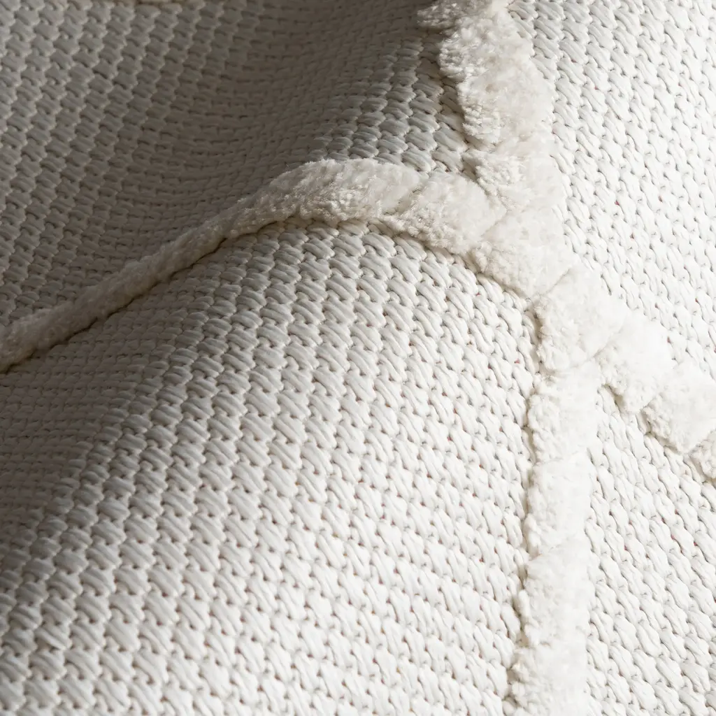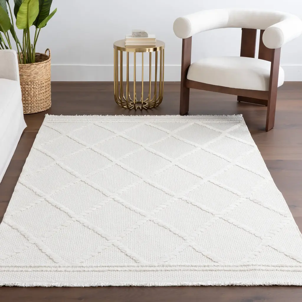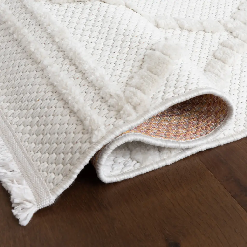 Experience unique design with the high-low texture woven into this accent piece. Whether you're lounging in the living room, unwinding in the bedroom, or entertaining guests in the dining area, this rug provides the perfect backdrop for relaxation and enjoyment. Constructed with the finest materials and attention to detail, this rug embodies understated elegance, luxurious texture, and unparalleled durability, making it the perfect addition to any space. The addition of tasteful tassels adds a touch of understated flair, elevating the rug to a true statement piece. Versatile and adaptable, this rug seamlessly integrates with any decor type, from minimalist modern to cozy farmhouse chic.
