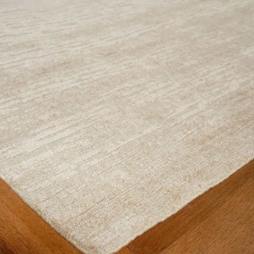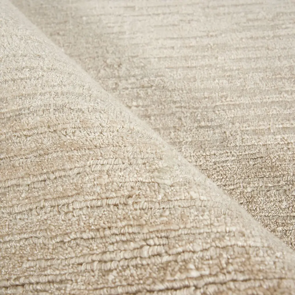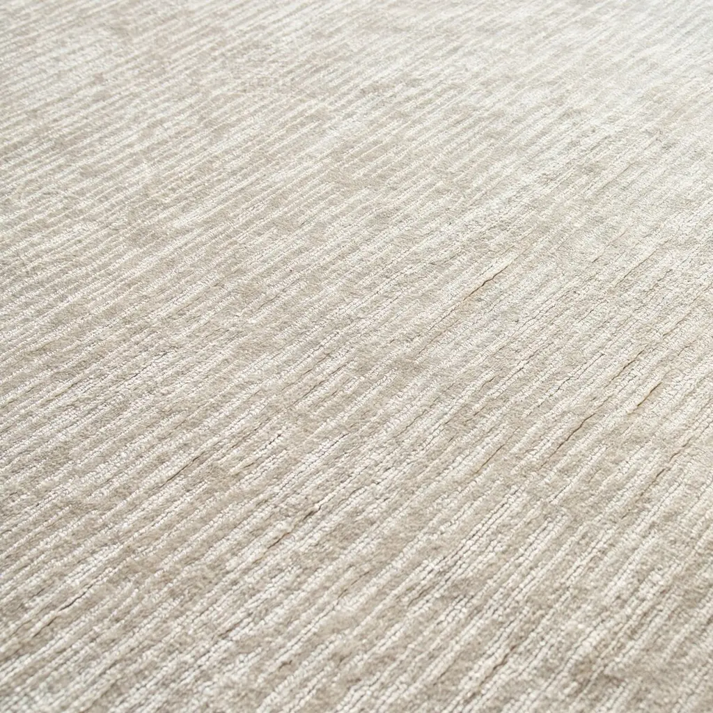 The Brynnlee rug features a soft, plush pile with loop accents in a random multi-directional line pattern. Each versatile rug is handmade with an ultra-fine blend of bamboo and banana silk fiber using contemporary soft neutral colors. An elegant and eye-appealing option for any room.