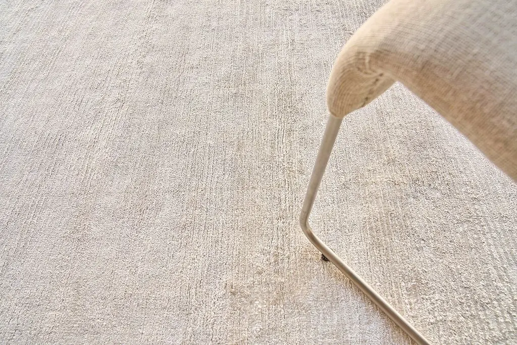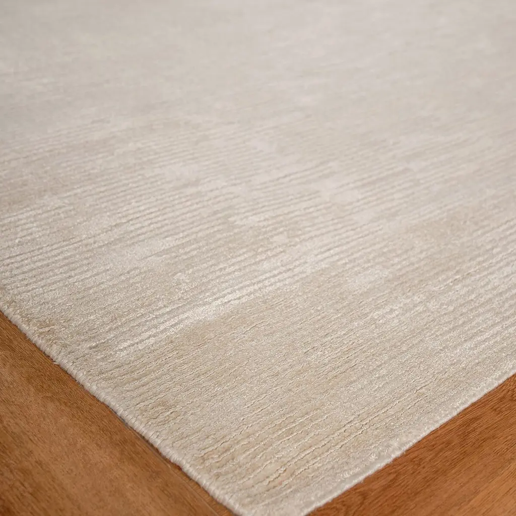 The Brynnlee rug features a soft, plush pile with loop accents in a random multi-directional line pattern. Each versatile rug is handmade with an ultra-fine blend of bamboo and banana silk fiber using contemporary soft neutral colors. An elegant and eye-appealing option for any room.