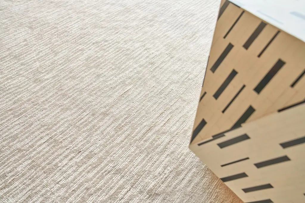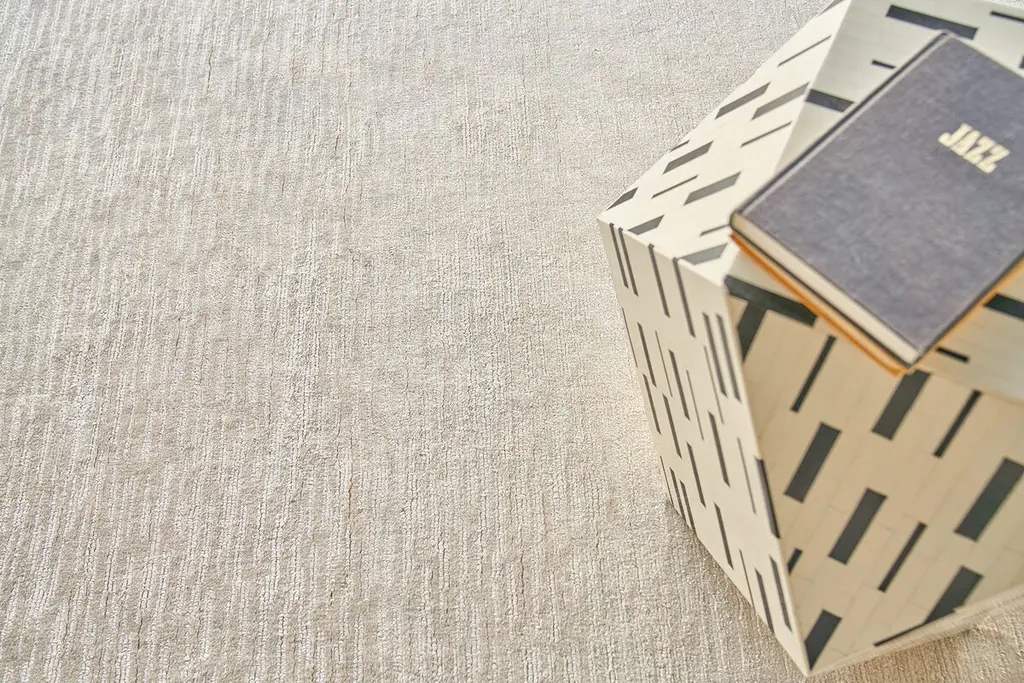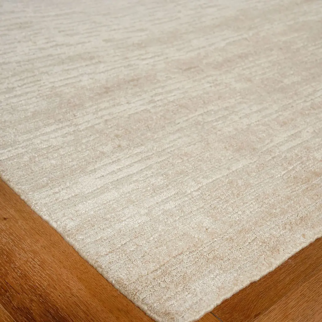 The Brynnlee rug features a soft, plush pile with loop accents in a random multi-directional line pattern. Each versatile rug is handmade with an ultra-fine blend of bamboo and banana silk fiber using contemporary soft neutral colors. An elegant and eye-appealing option for any room.