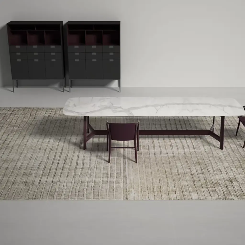 This refined gray rug from the Bamboo Design Collection boasts an elegant modern design inspired by bamboo forests. The willowy silhouettes of bamboo reeds are rendered through a minute hand-knotting on a loom and consequent etching, which creates a pleasant textural quality given by the two different fiber heights. Also coming in different colors, it is available in tailor-made options, please contact the Concierge for details.