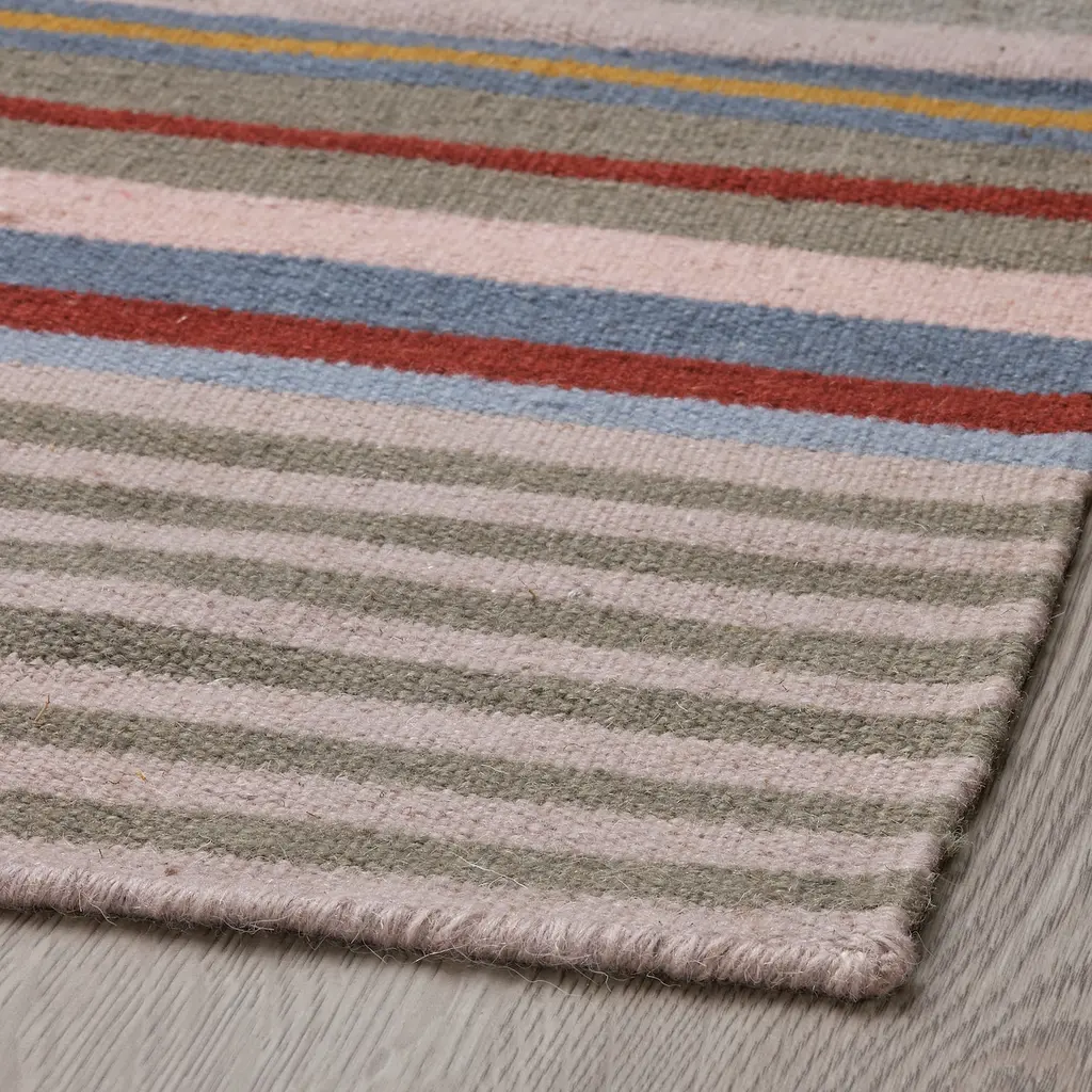 BUDDINGE Rug, flatwoven - handmade multicolor/stripe pattern 5 ' 7 "x7 ' 10 ". The beauty is in the uniqueness - this rug is handwoven making it one of a kind. The rug is made of wool so it’s naturally soil-repellent and very durable.