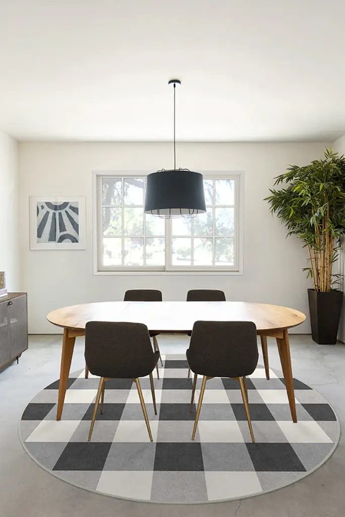 Bring a rustic charm to your decor with our Buffalo Plaid Black & White Rug. Simple yet stylish, this rug features a checkered design in high-contrast hues of black and white. Water-resistant, stain-resistant, and machine-washable.