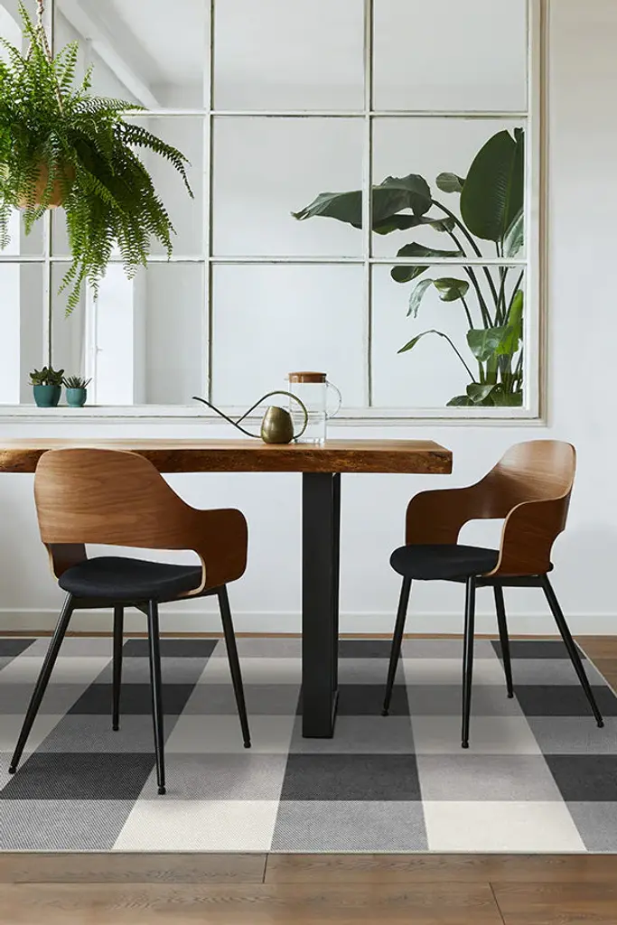 Bring a rustic charm to your decor with our Buffalo Plaid Black & White Rug. Simple yet stylish, this rug features a checkered design in high-contrast hues of black and white. Water-resistant, stain-resistant, and machine-washable.