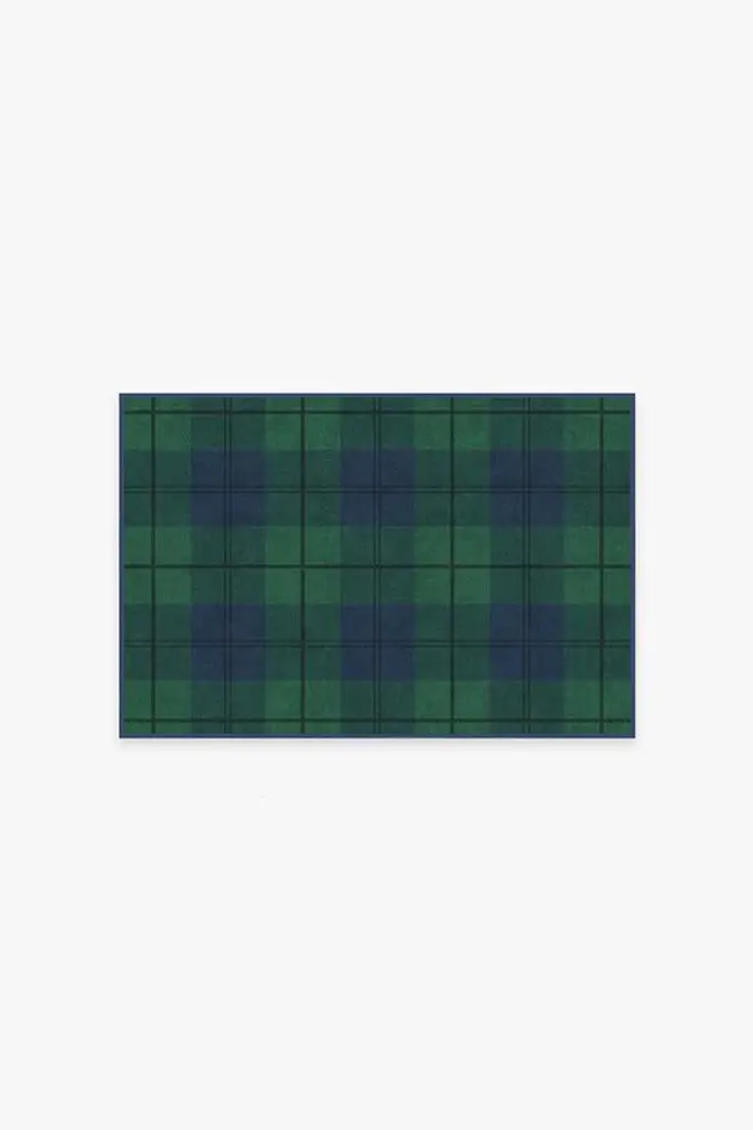 A festive take on a classic pattern. Our Buffalo Plaid Blackwatch Rug brings together holiday hues of evergreen and teal blue for an accent piece that will pair perfectly with a cup of hot cocoa and a snuggly blanket. Water-resistant, stain-resistant, and machine-washable.