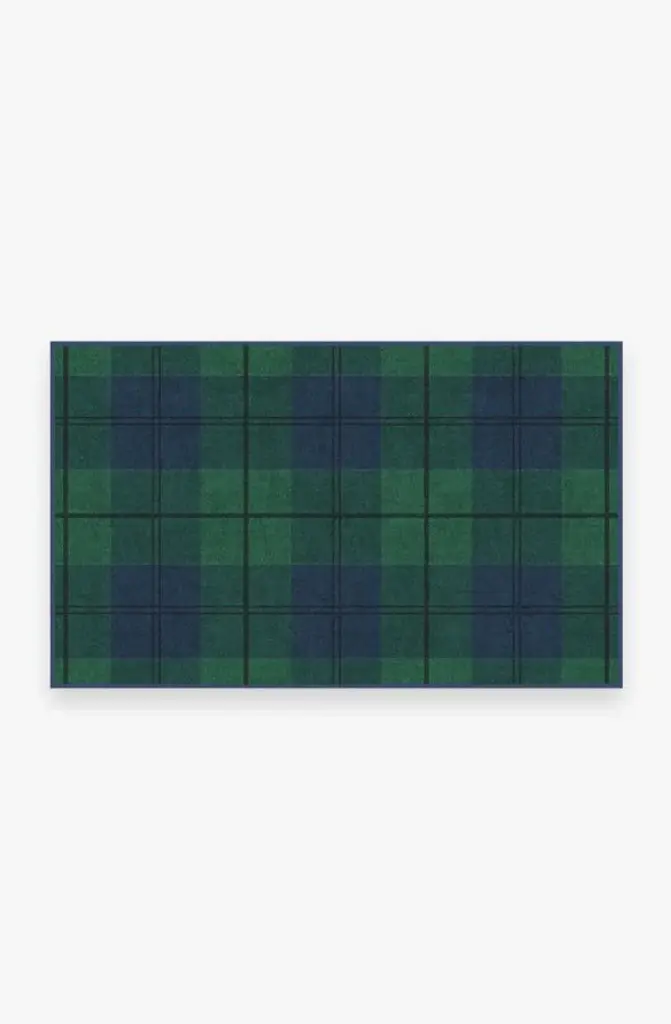 A festive take on a classic pattern. Our Buffalo Plaid Blackwatch Rug brings together holiday hues of evergreen and teal blue for an accent piece that will pair perfectly with a cup of hot cocoa and a snuggly blanket. Water-resistant, stain-resistant, and machine-washable.