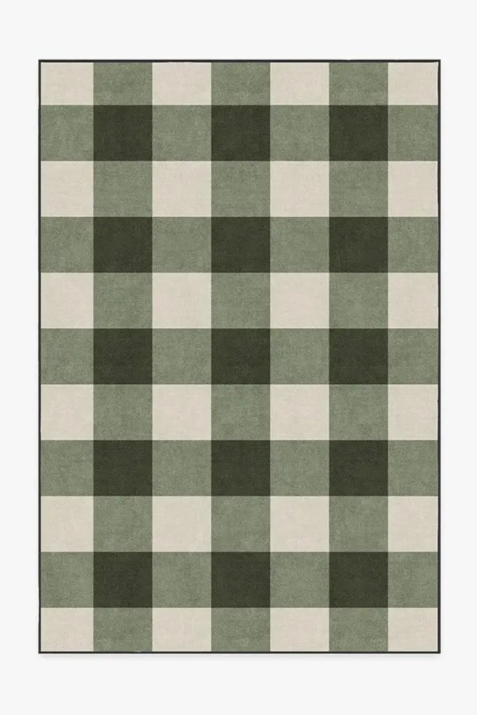 Classic and charming, our Buffalo Plaid Green & White Rug features shades of fern and pearl. This checkered rug design will surely complement any contemporary or classic-style homes. Water-resistant, stain-resistant, and machine-washable.