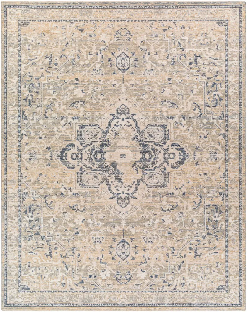 Collection: Tondod Colors: Beige, Charcoal, Gray, Light Gray, Navy, Medium Gray Construction: Machine Woven Material: 100% Polyester Pile: Medium Pile Pile Height: 0.35" Styles: Traditional Made In: Turkey Thickness: 0.55" Fringe Length: 1.18" Price Range: $$$$$ (Most Affordable)