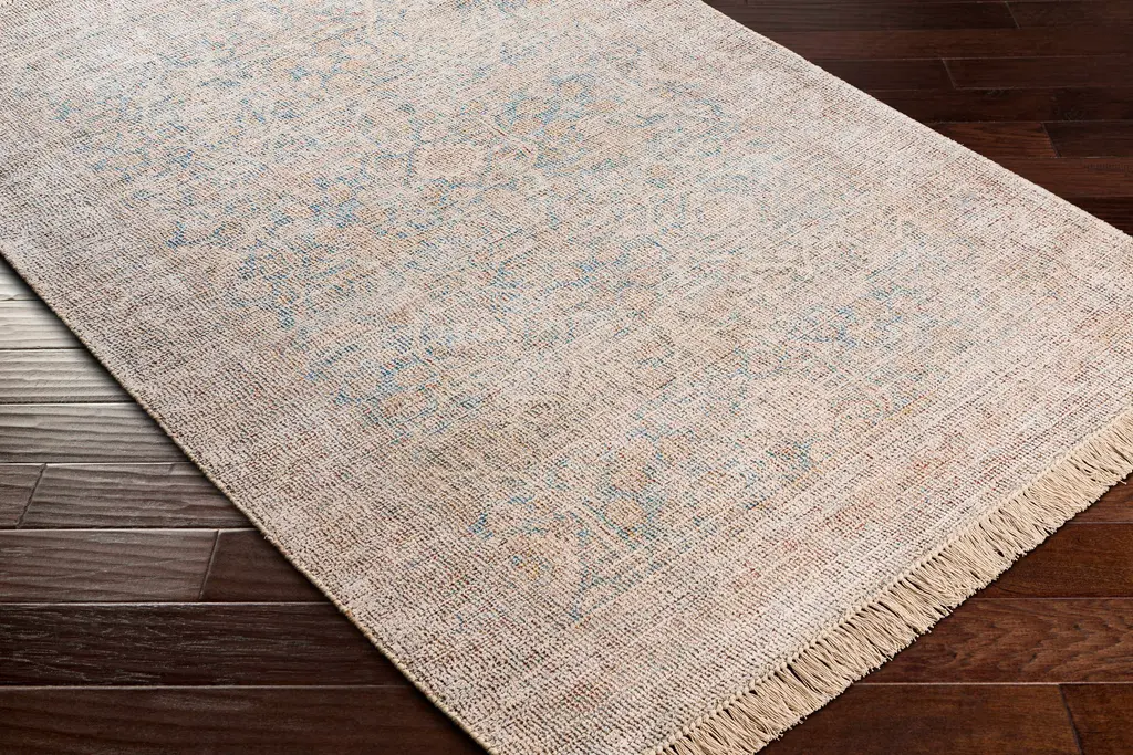 Collection: Bunawan Colors: Blue, Burgundy, Light Blue, Light Gray, Red, Sky Blue Construction: Hand Woven Material: 50% Cotton, 20% Polyester, 15% Wool, 15% Viscose Pile: No Pile Styles: Traditional Made In: India Thickness: 0.2" Fringe Length: 3" Price Range: $$$$$ (Affordable)