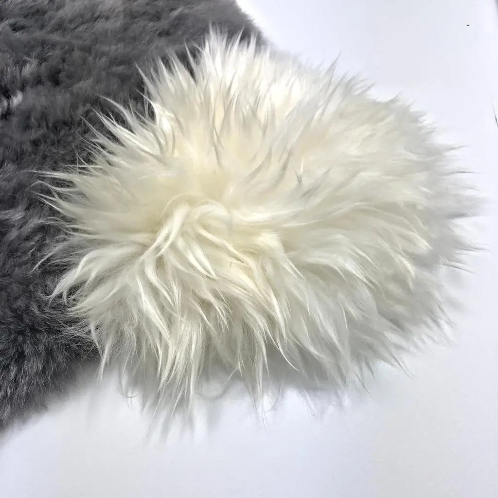 Bunny Rabbit Nursery Rug Grey Sheepskin With Long Wool Pompom Tail