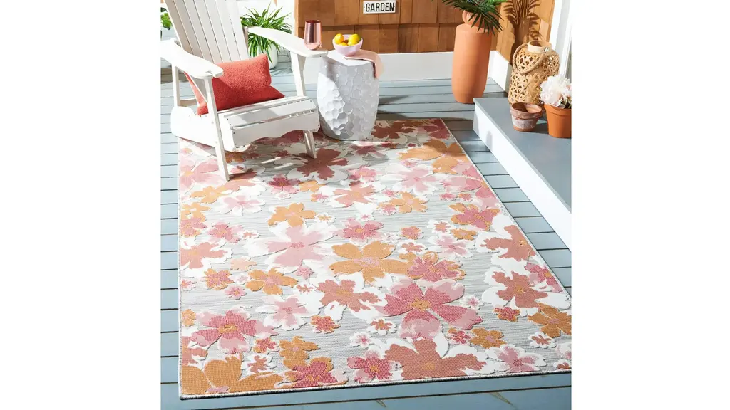 The Cabana IV Area Rug offers an elaborate floor covering for any busy area of the home, inside or out. The playful motif brims with "staycation" vibes on any deck, porch, or patio. It is made using durable synthetic yarns for resistance to weather, wear, mold, mildew, and fading from the sun.