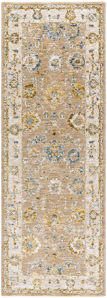 Collection: Cabinteely Colors: Cream, Denim, Mustard, Tan, Light Brown, Light Gray Construction: Machine Woven Material: 100% Polyester Pile: Medium Pile Pile Height: 0.35" Styles: Traditional Backing: Canvas Made In: Turkey Thickness: 0.39" Fringe Length: 0.5" Price Range: $$$$$ (Affordable)
