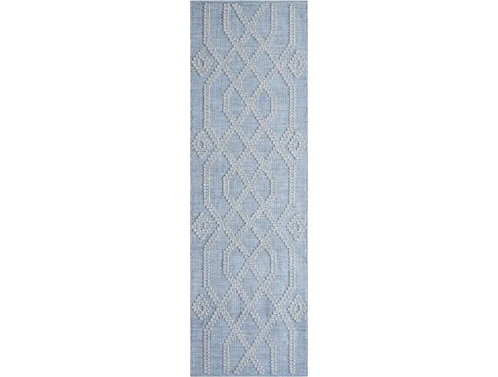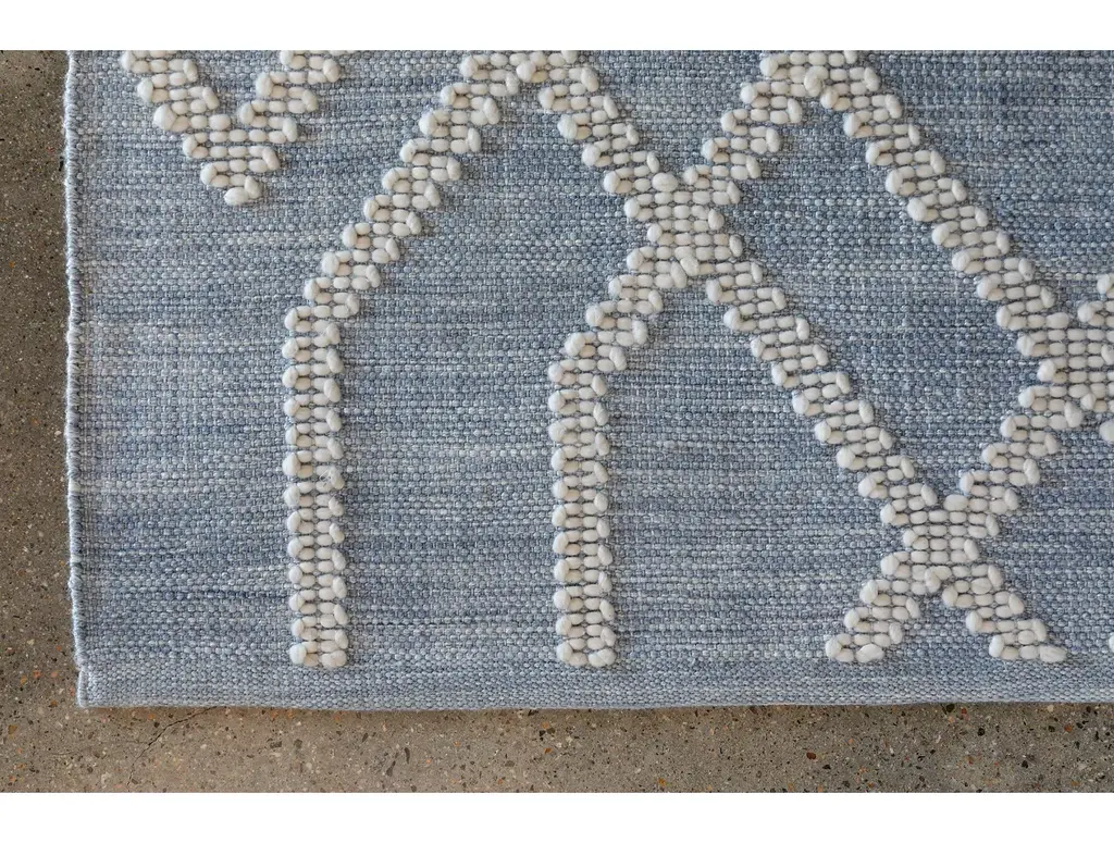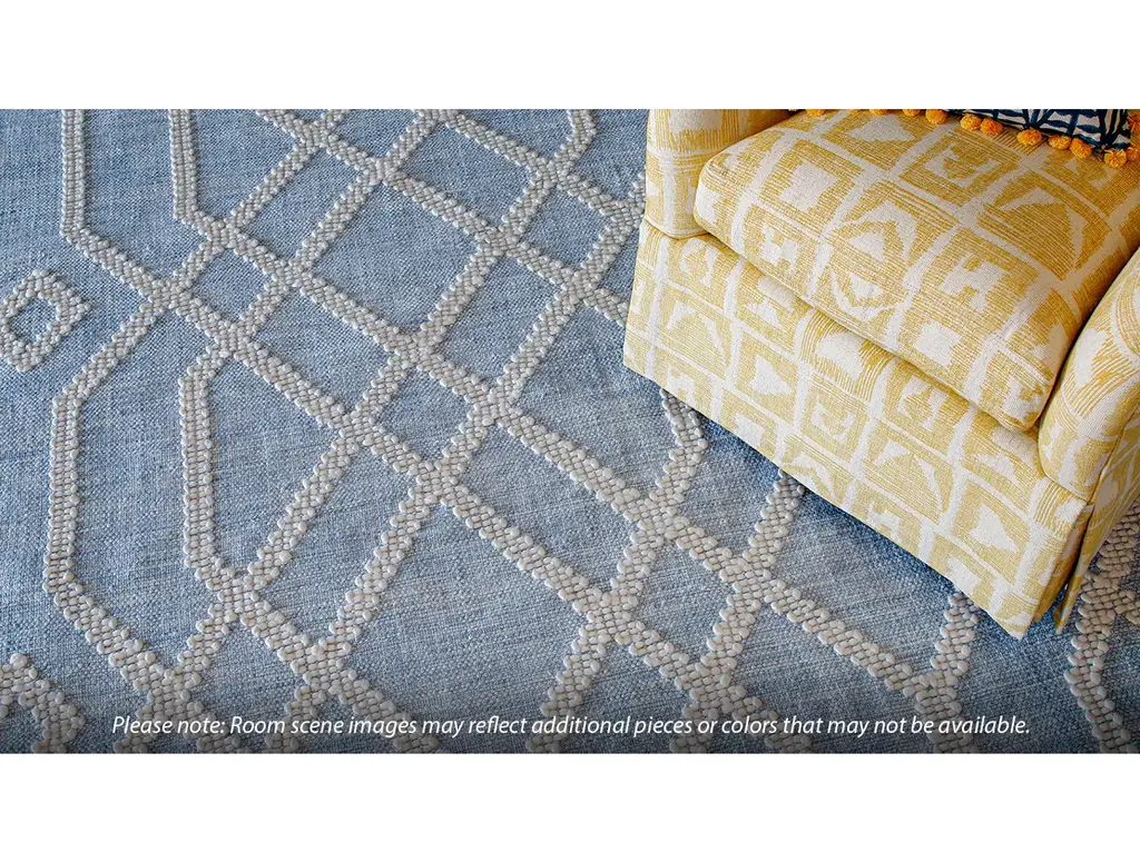 The Company C Cable Blue Area Rug will complement any room with its raised geometric cable design in a soft blue hue. This contemporary rug is hand woven in India of synthetic fibers for long-lasting beauty. Available in other colors.