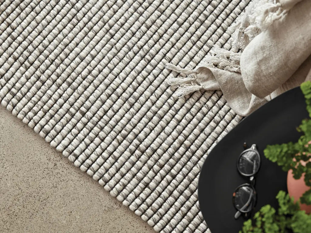 This simple, neutral rug is handwoven by experienced Indian artisans. Made of 50% wool and 50% viscose, the Caden rug is durable yet soft. Available in four sizes: 5x8, 6x9, 8x10, and 9x12.